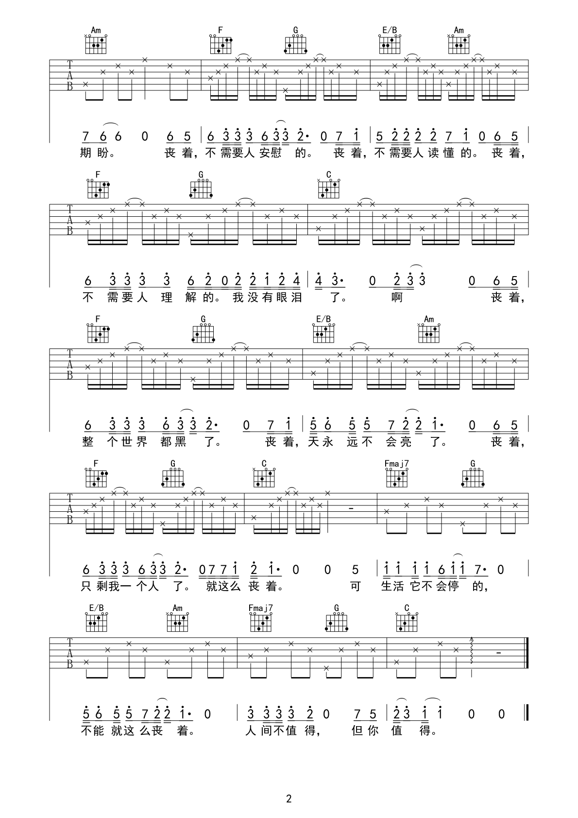 当前位置:琴谱网>吉他弹唱>丧着