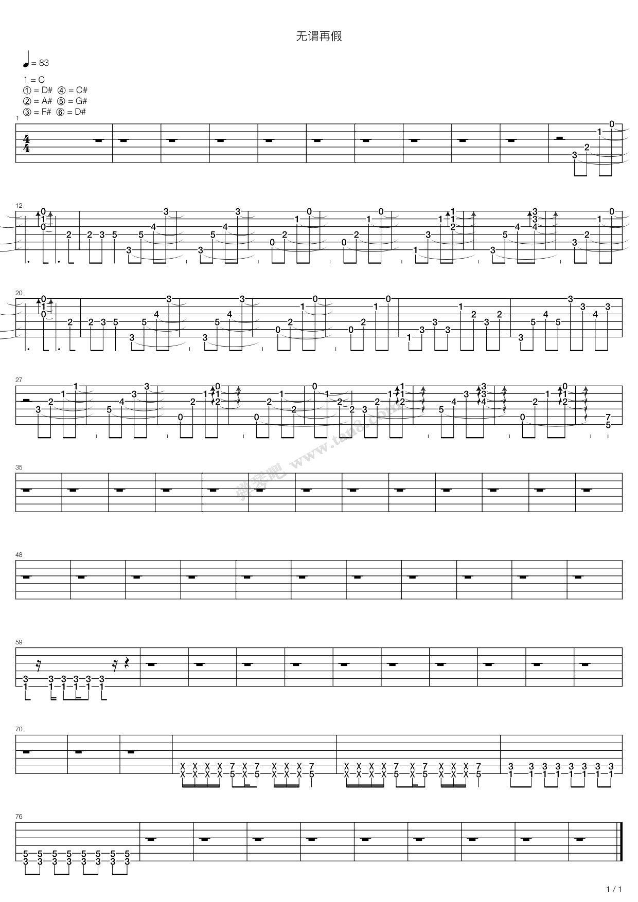曲谱介绍: Mr.《无谓再假》吉他独奏谱,采用C调指法编配,弹琴吧编配出品,共有1张高清图谱,免翻页排版设计。