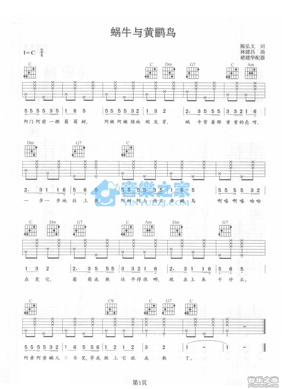 蜗牛与黄鹂鸟吉他谱 - 儿歌 - C调吉他弹唱谱
