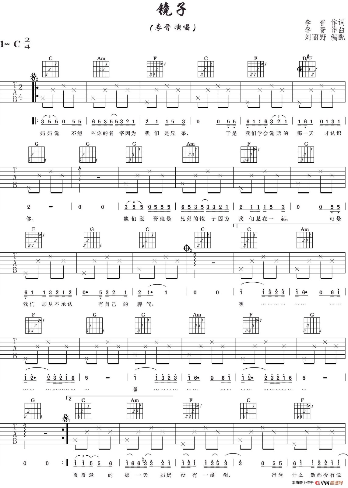镜子吉他谱 - 李晋 - C调吉他弹唱谱
