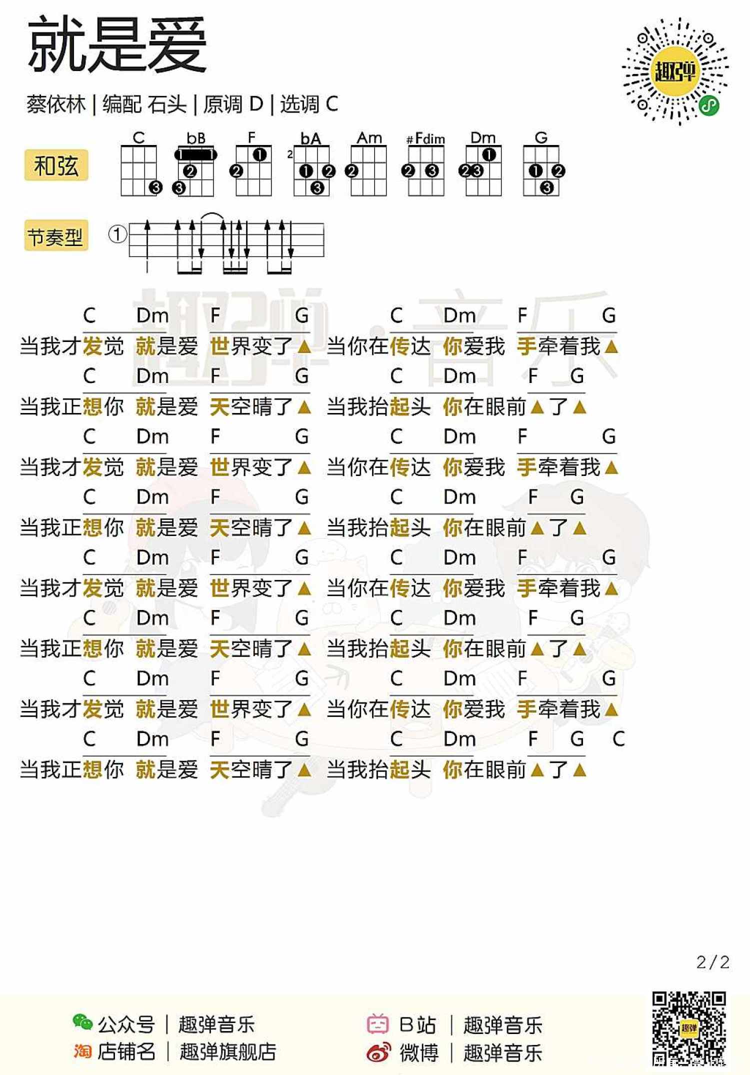 曲谱介绍: Aloha~今天跟大家分享的歌曲是来自 Jolin蔡依林的「就是爱」 俏皮可爱的歌词 把恋爱中小女生的心情都写出来了呢~   就是爱尤克里里谱