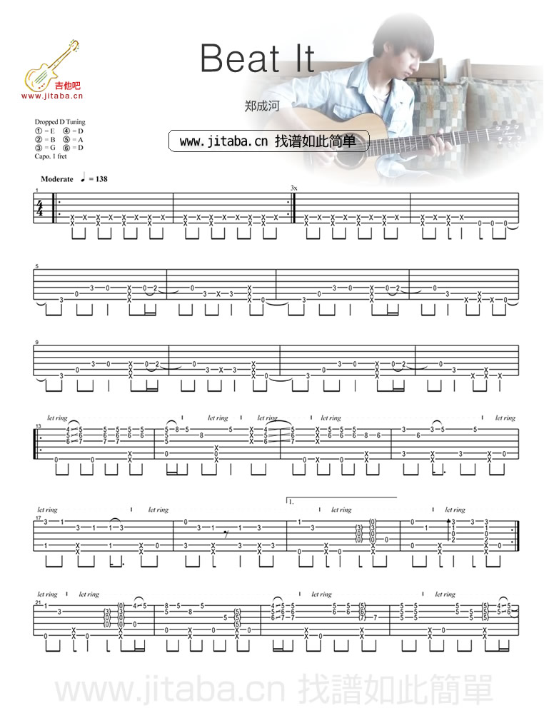 曲谱介绍: beat《beatit》吉他独奏谱,采用E调指法编配,吉他吧编配出品,共有3张高清图谱。