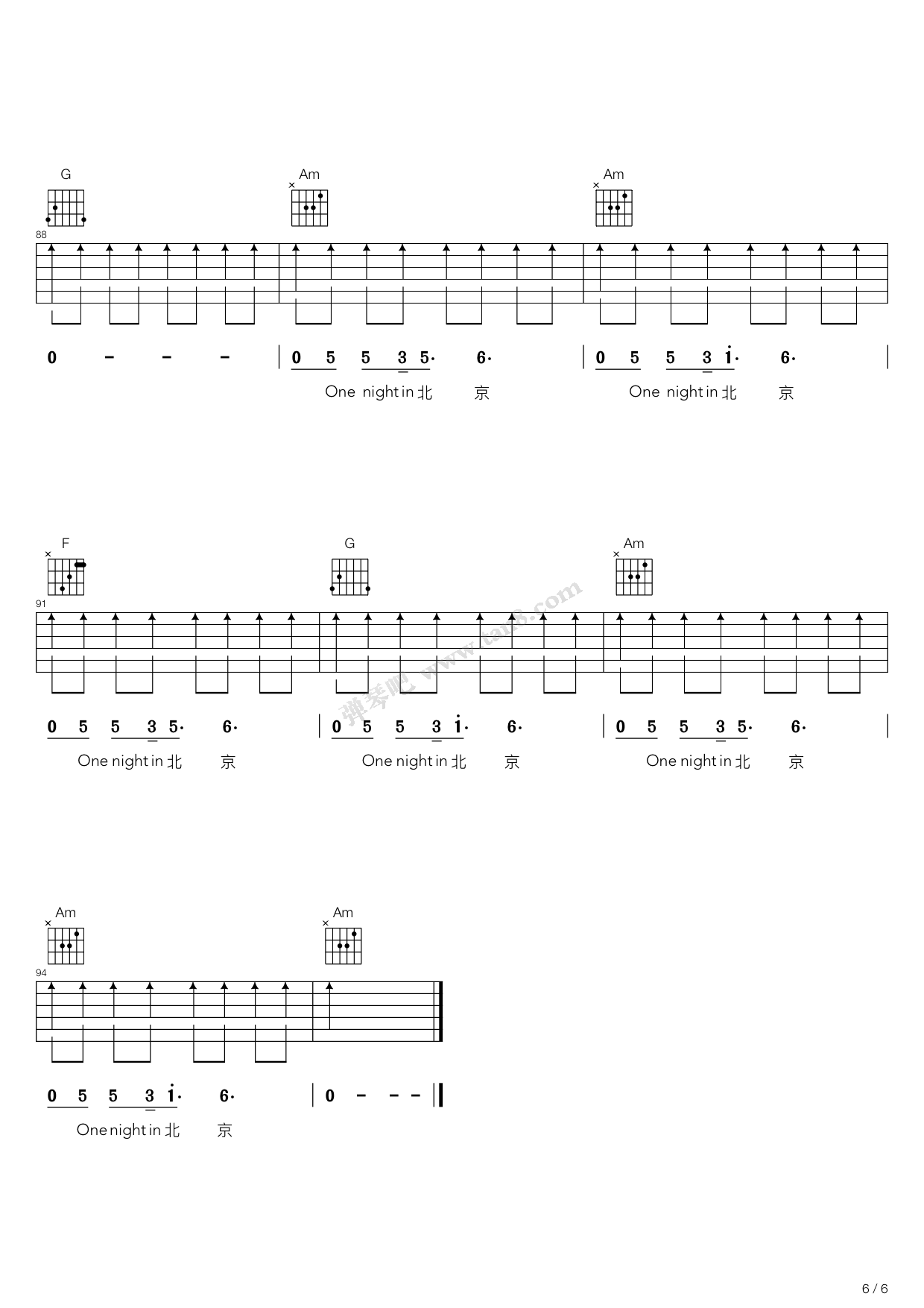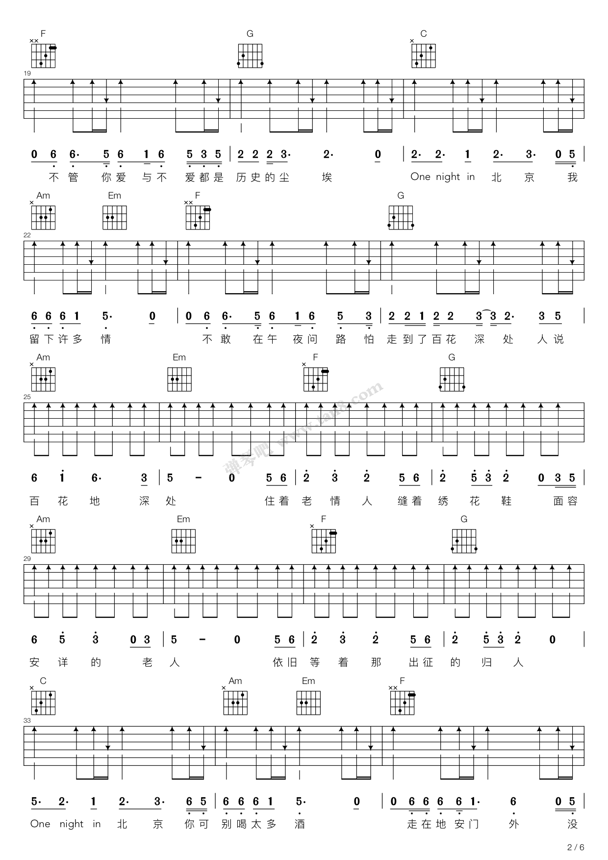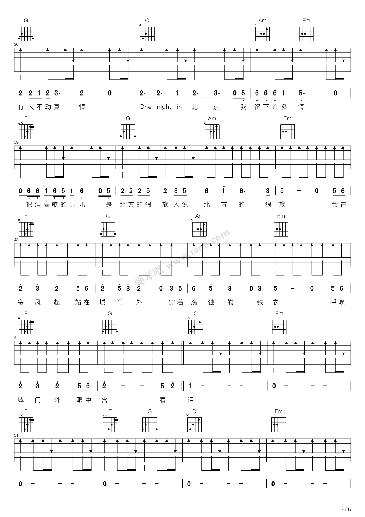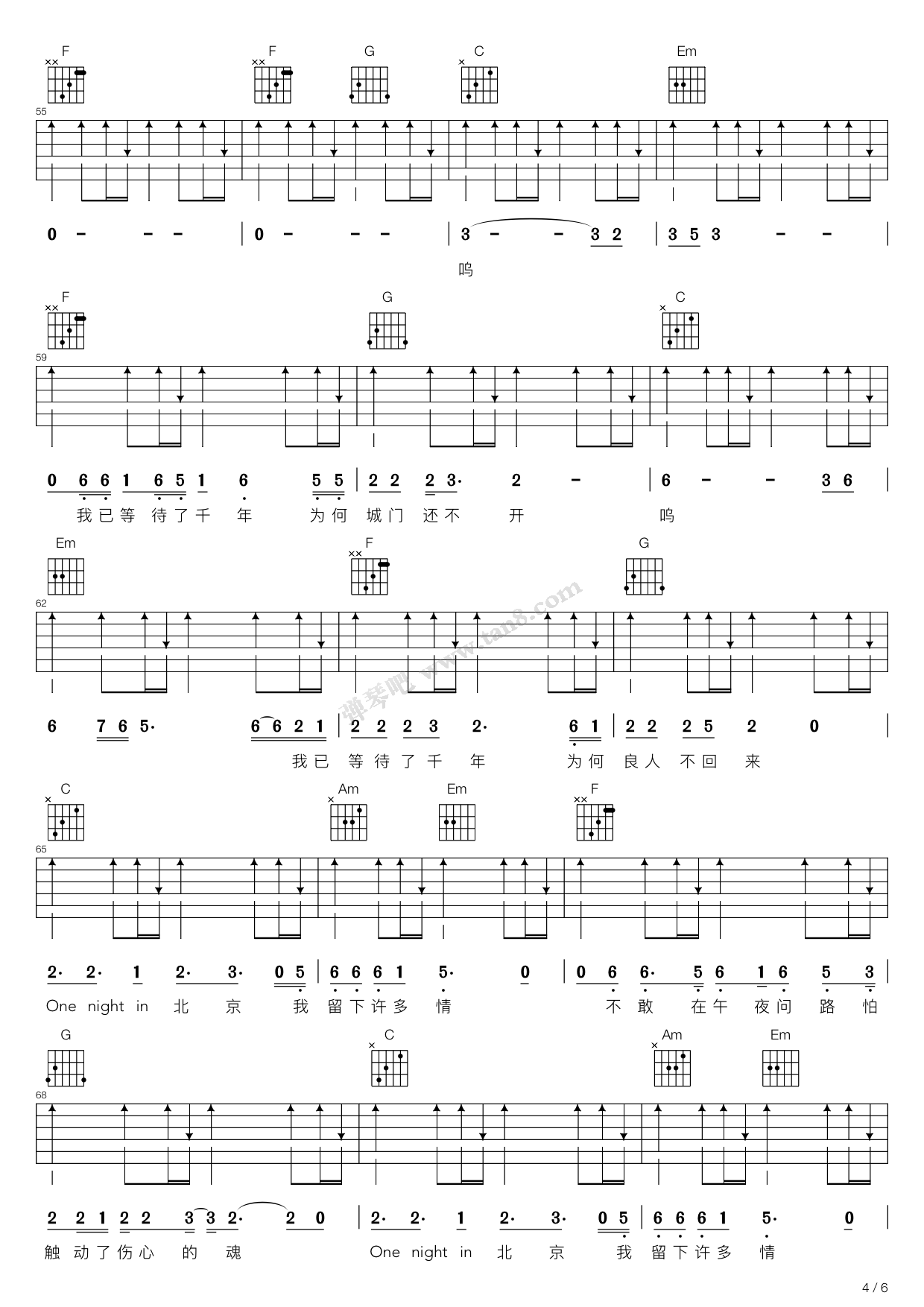 当前位置:琴谱网>吉他弹唱>北京一夜
