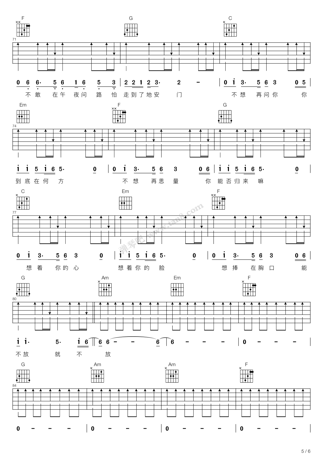 吉他弹唱C调来源:弹琴吧297 浏览2024-01-20 10:26发布图谱共6页