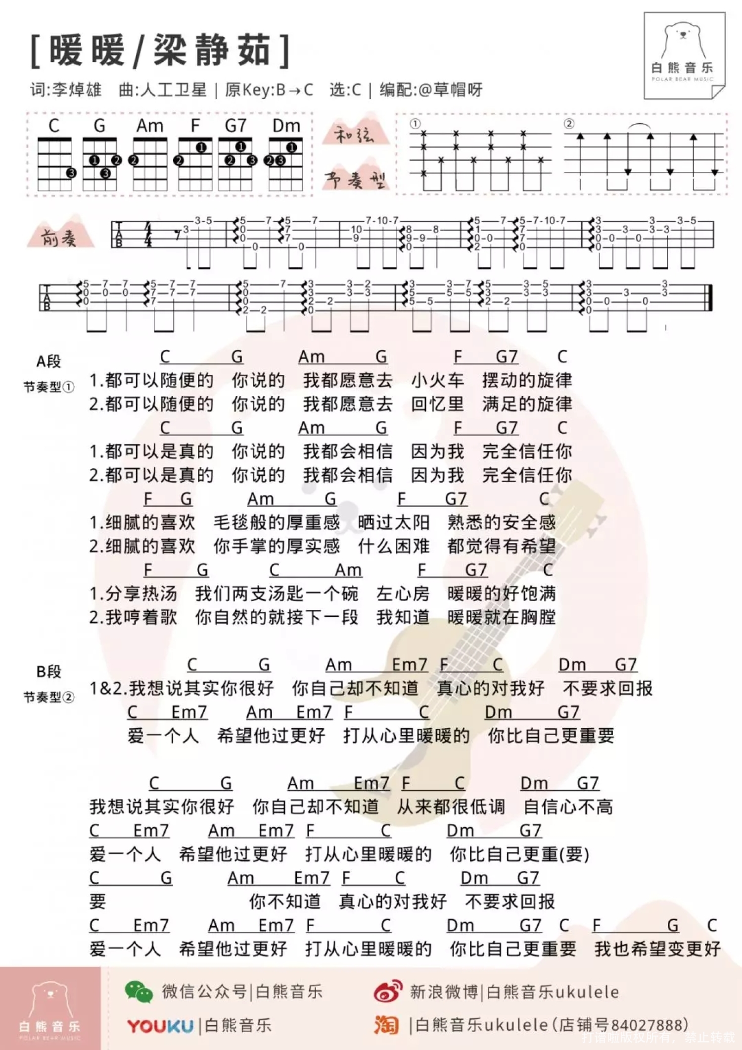 当前位置:琴谱网>尤克里里>暖暖