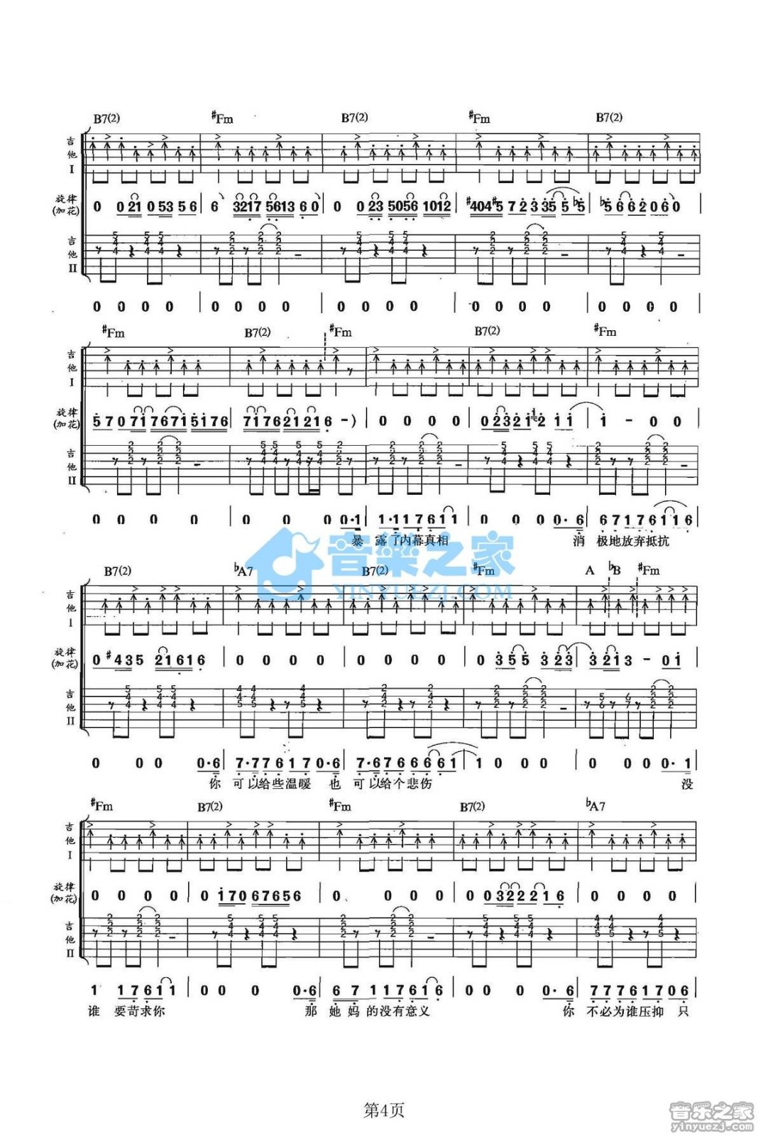 曲谱介绍: 郑钧《赤裸裸》吉他弹唱谱,采用A调指法编配,音乐之家编配出品,共有6张高清图谱。