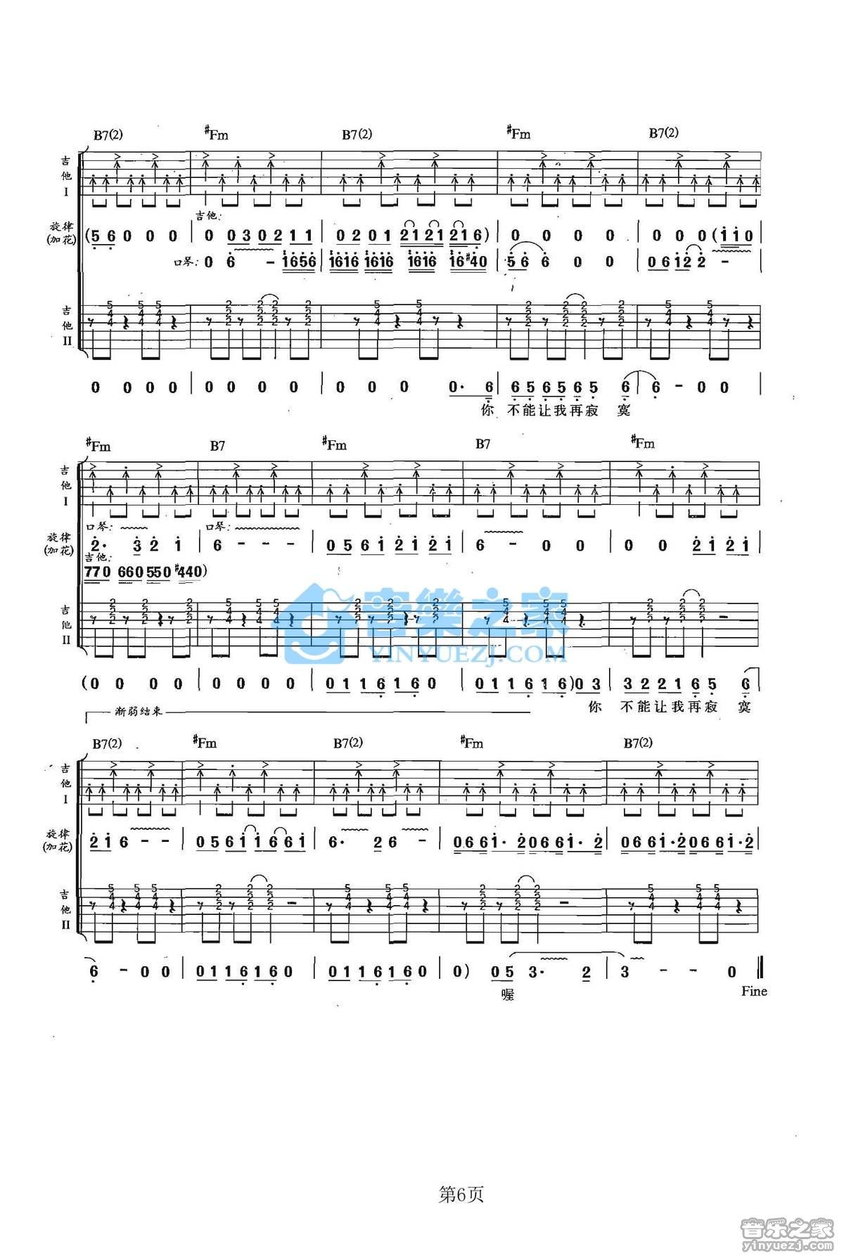 吉他弹唱A调来源:音乐之家608 浏览2024-01-20 10:47发布图谱共6页