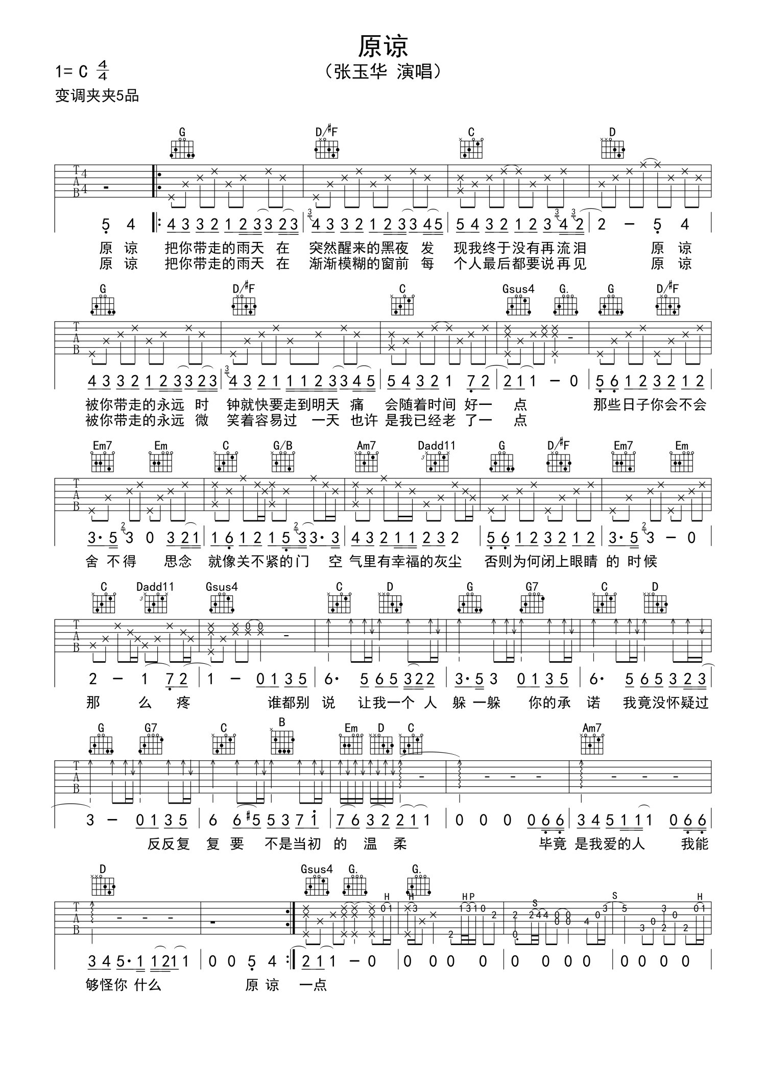 • 原谅吉他谱 - 张玉华 - G调吉他弹唱谱第1张