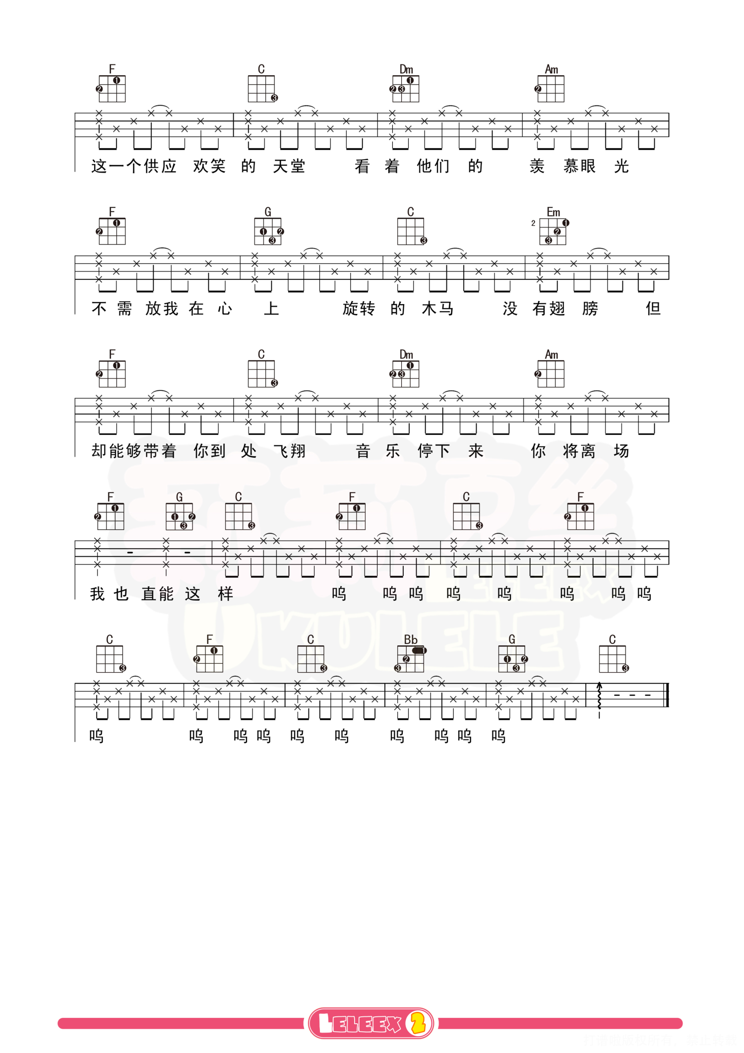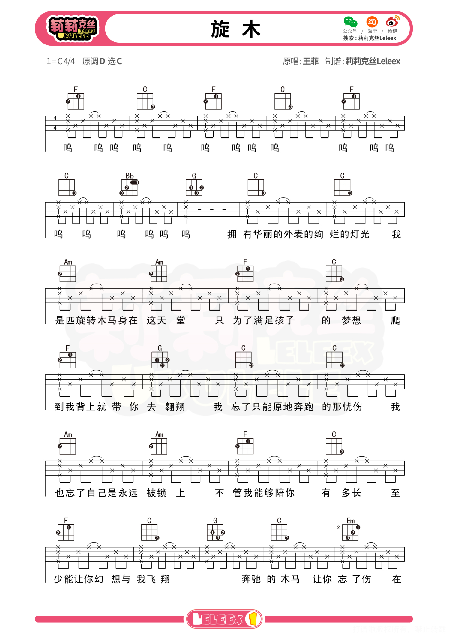 曲谱介绍: 「旋木」尤克里里谱 更多尤克里里曲谱/教学  关注@莉莉克丝Leleex