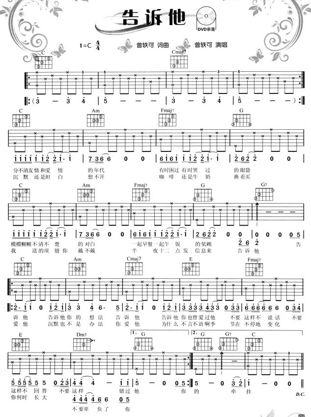 告诉他吉他谱 - 曾轶可 - C调吉他弹唱谱