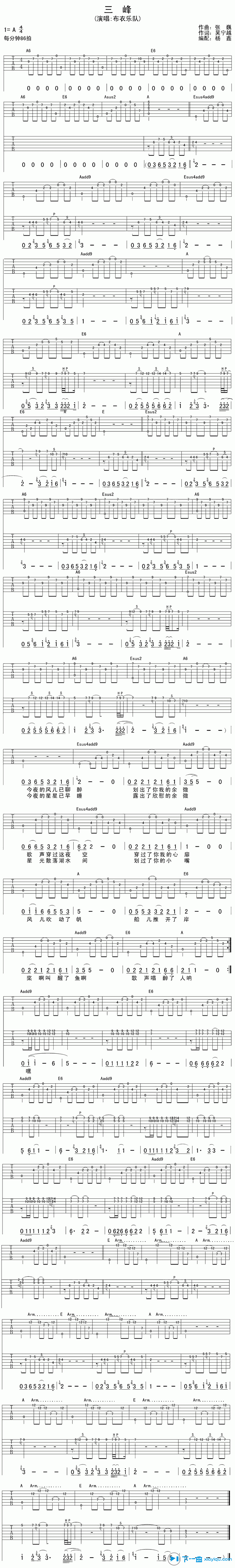 三峰吉他谱 - 布衣乐队 - A调吉他弹唱谱