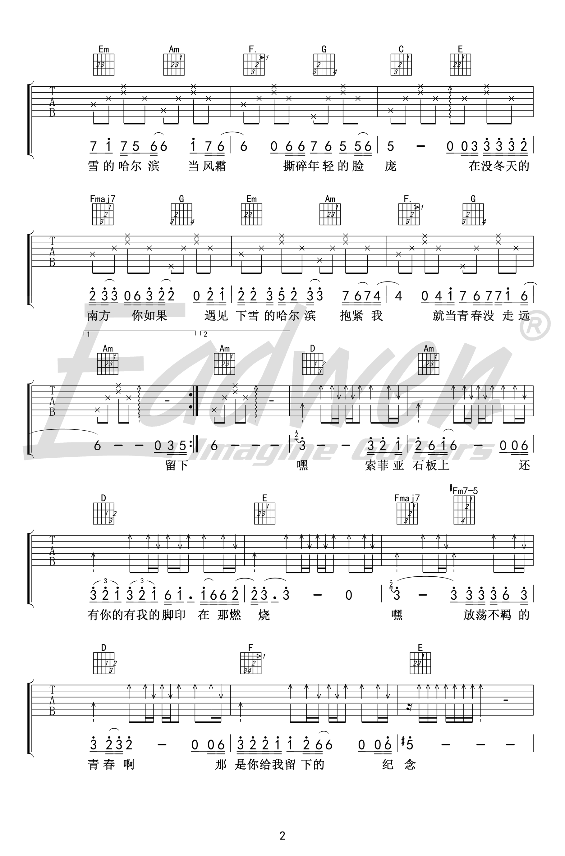 曲谱介绍: 常虹《下雪哈尔滨》吉他弹唱谱,采用C调指法编配,爱德文吉他教室编配出品,共有4张高清图谱。