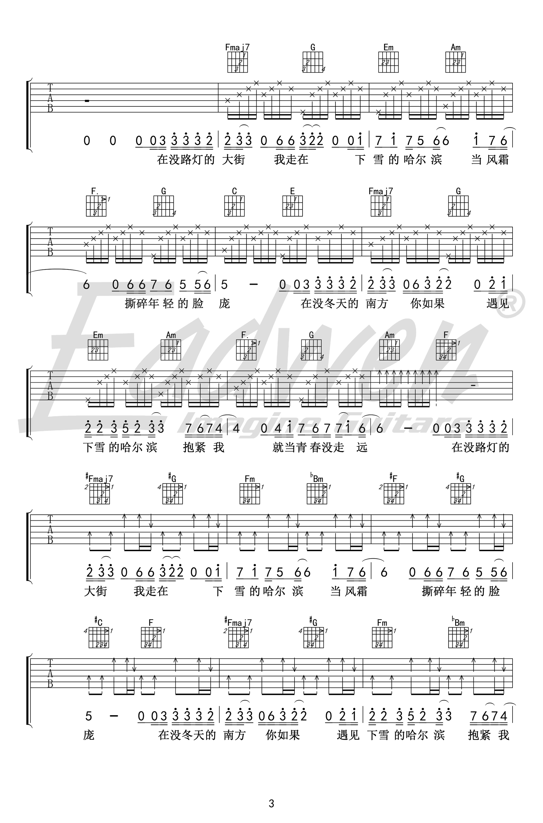 当前位置:琴谱网>吉他弹唱>下雪哈尔滨