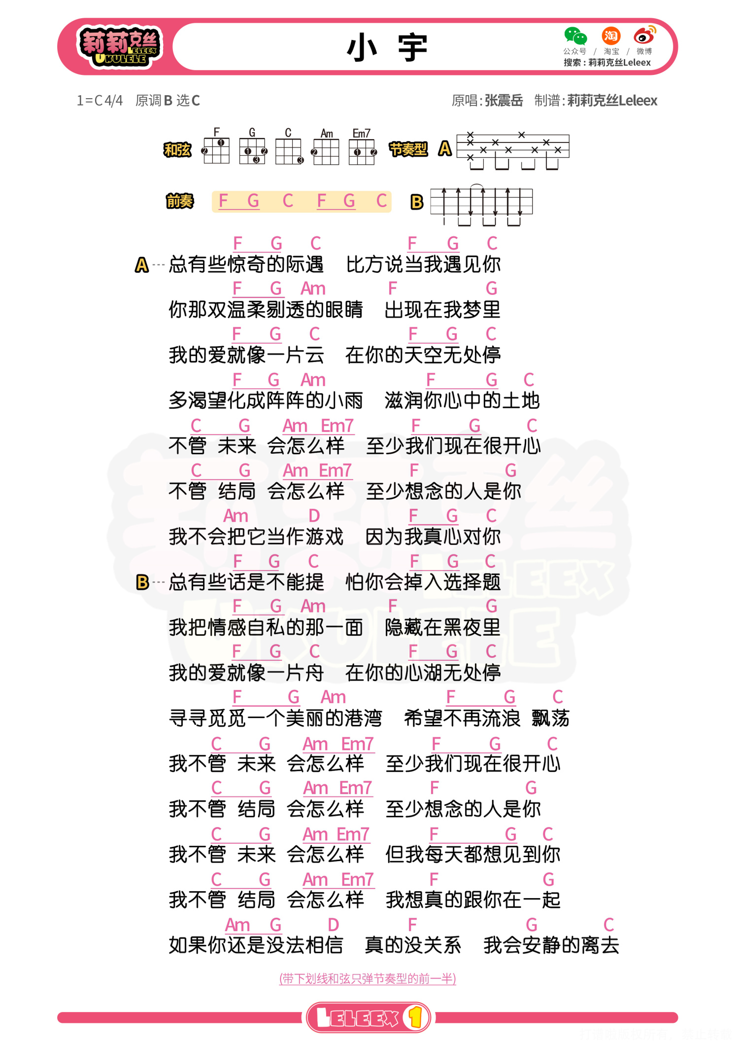 曲谱介绍: 「小宇」尤克里里谱 更多尤克里里曲谱/教程  关注@莉莉克丝Leleex