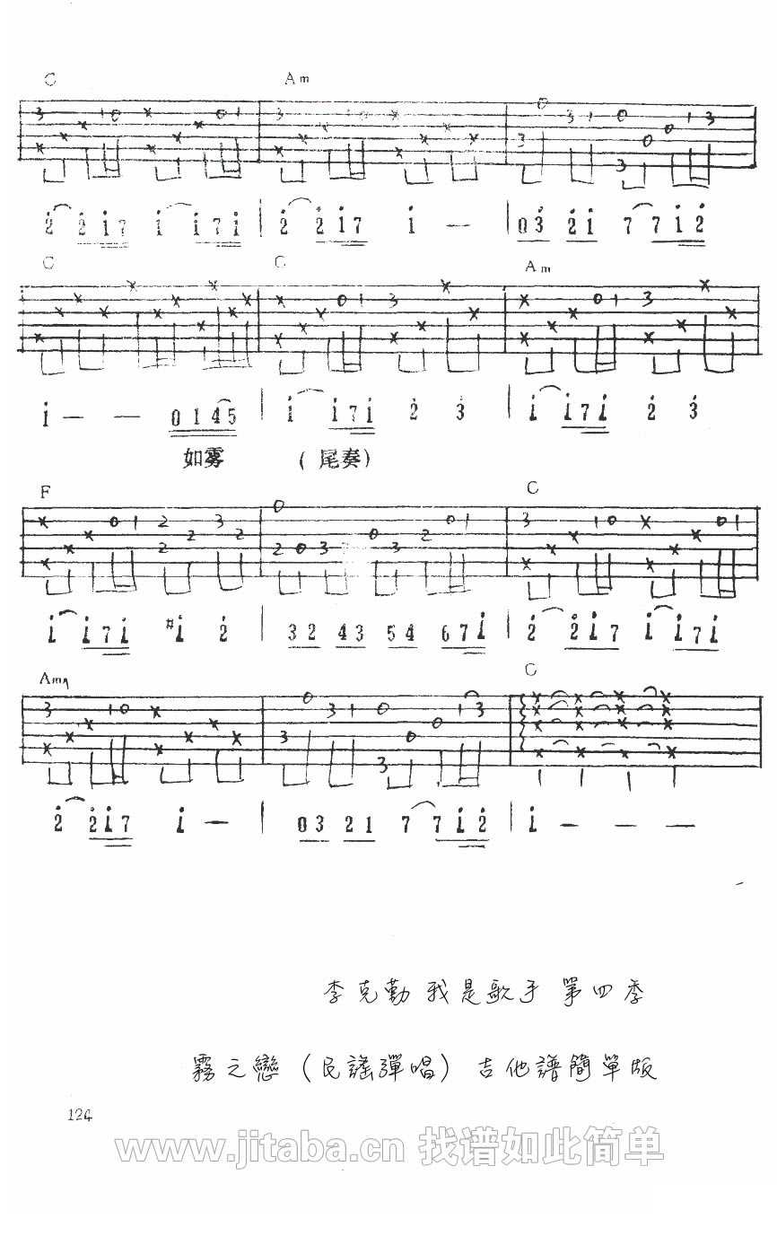 雾之恋吉他谱 - 李克勤 - C调吉他弹唱谱