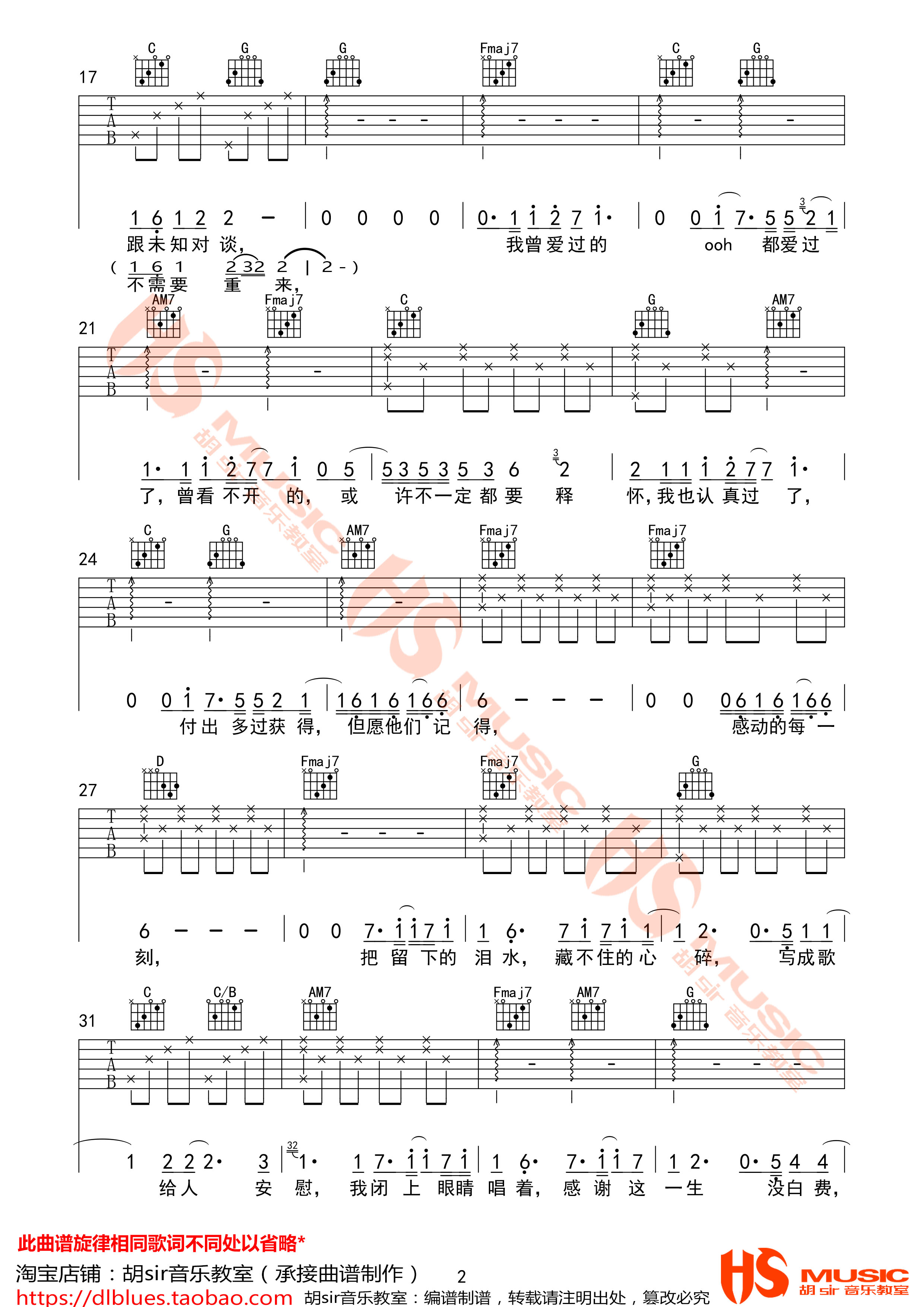 吉他弹唱C调来源:胡sir音乐教室164 浏览2024-01-20 11:53发布图谱共4页