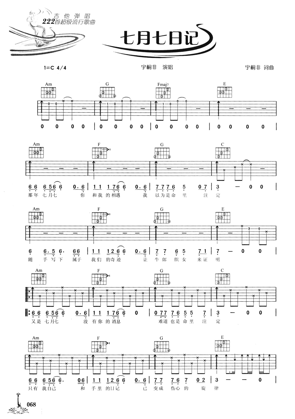 七月七日记吉他谱 - 宇桐非 - C调吉他弹唱谱
