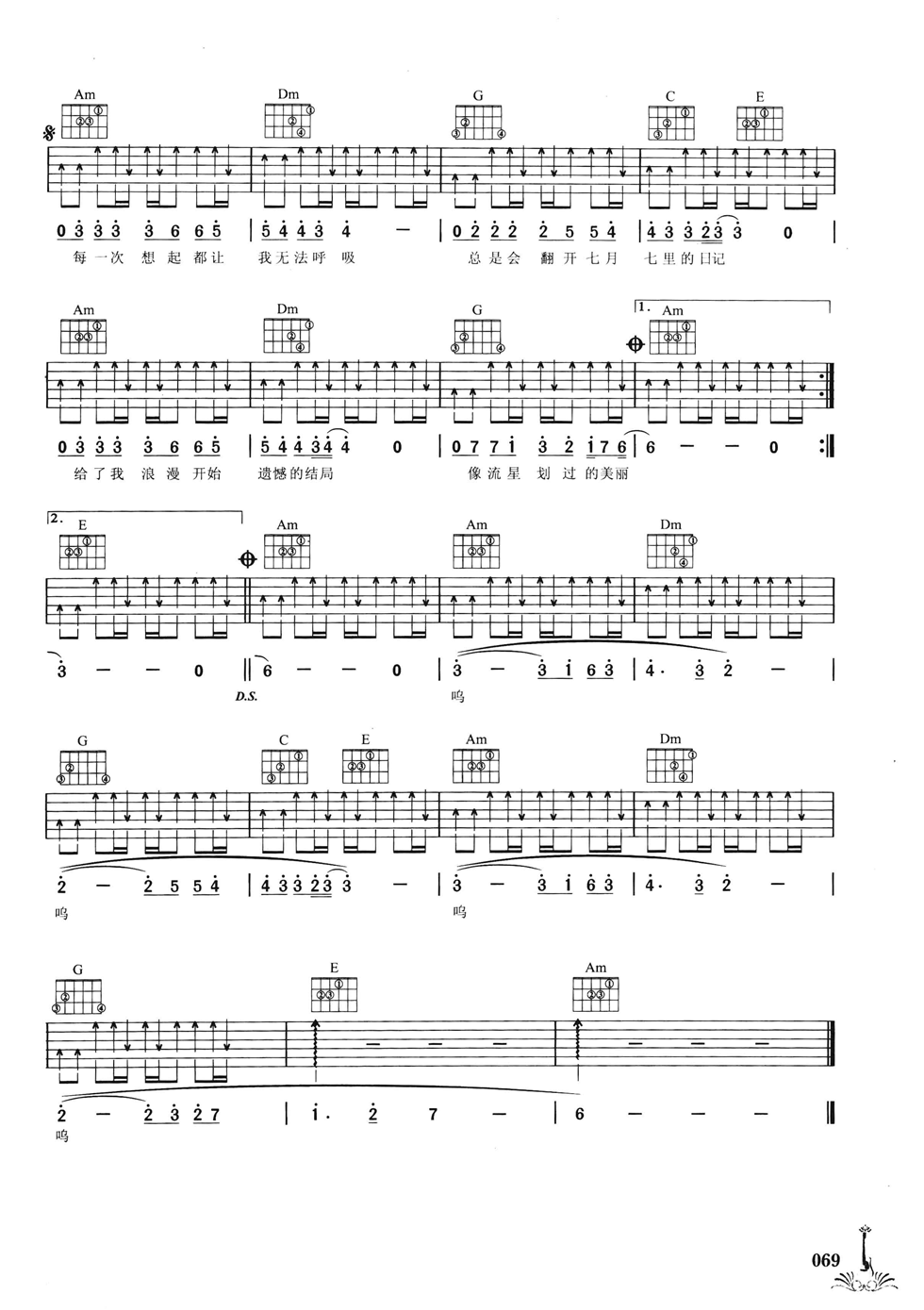 当前位置:琴谱网>吉他弹唱>七月七日记