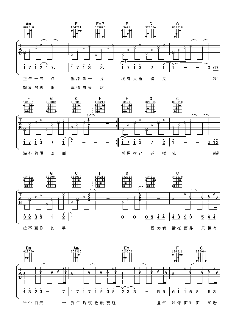 当前位置:琴谱网>吉他弹唱>西界