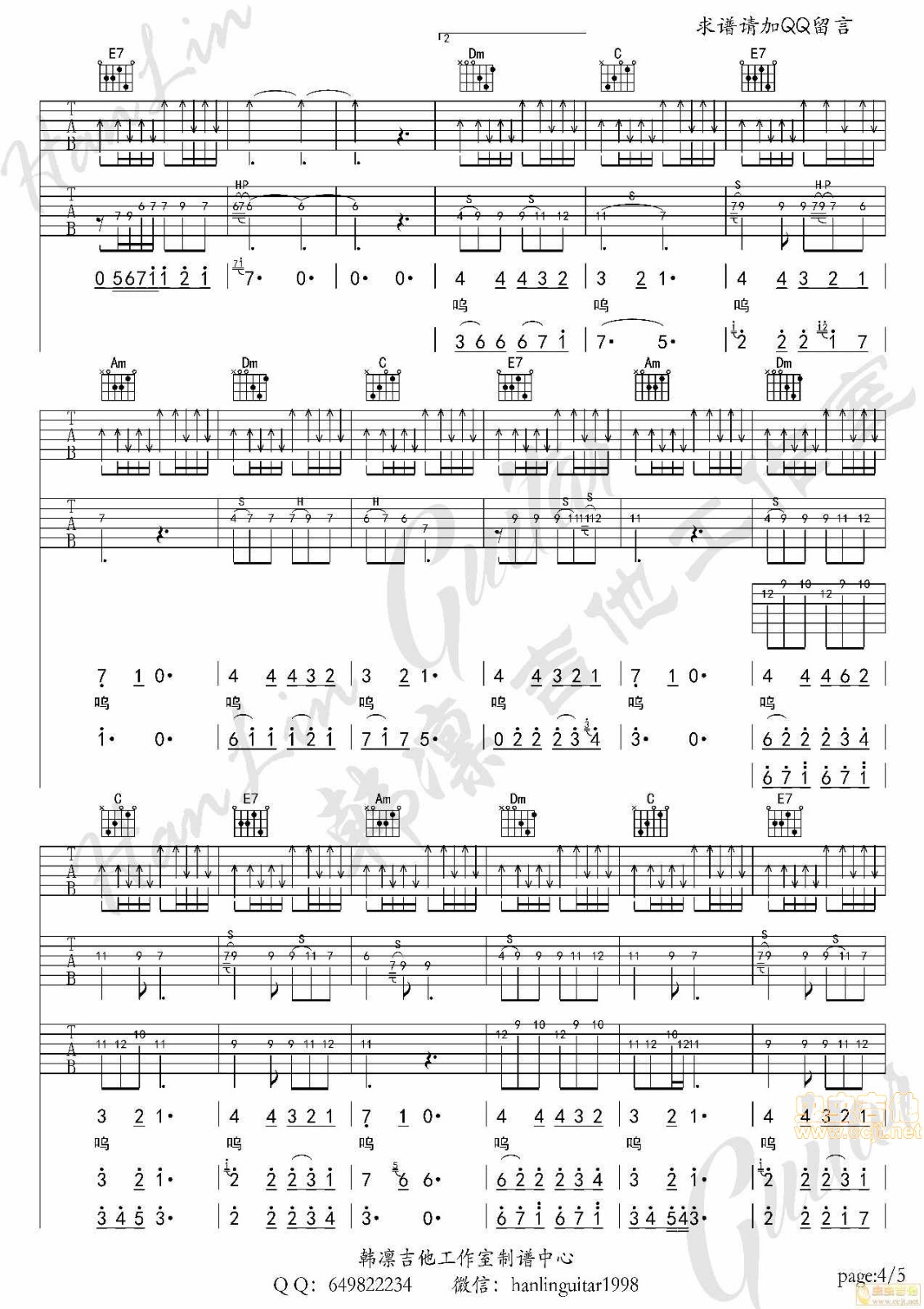 吉他弹唱C调来源:韩凛吉他工作室185 浏览2024-01-20 12:10发布图谱共5页