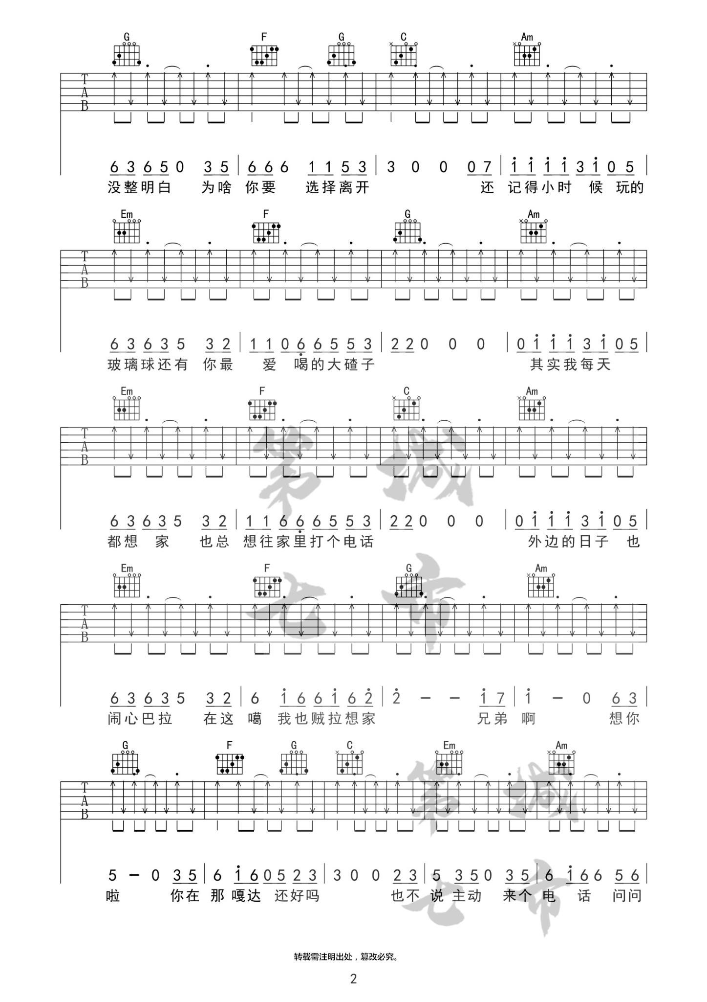 当前位置:琴谱网>吉他弹唱>兄弟想你了