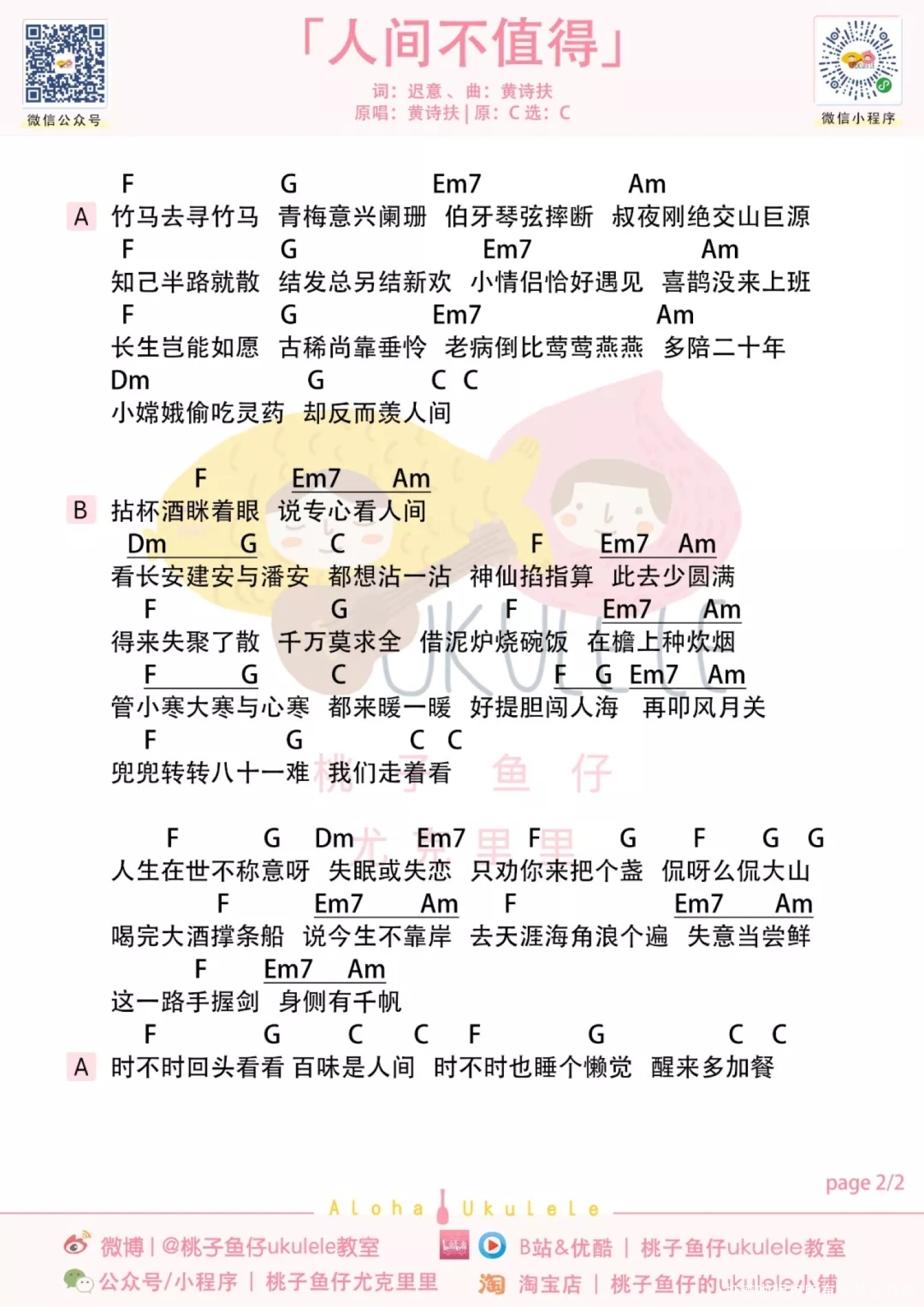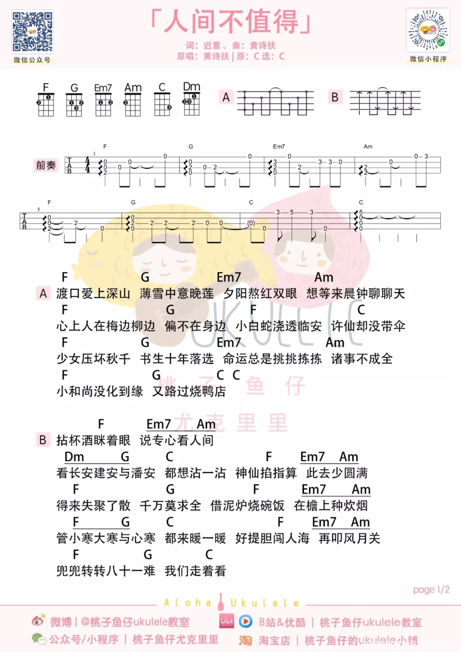 人间不值得尤克里里谱 - 黄诗扶