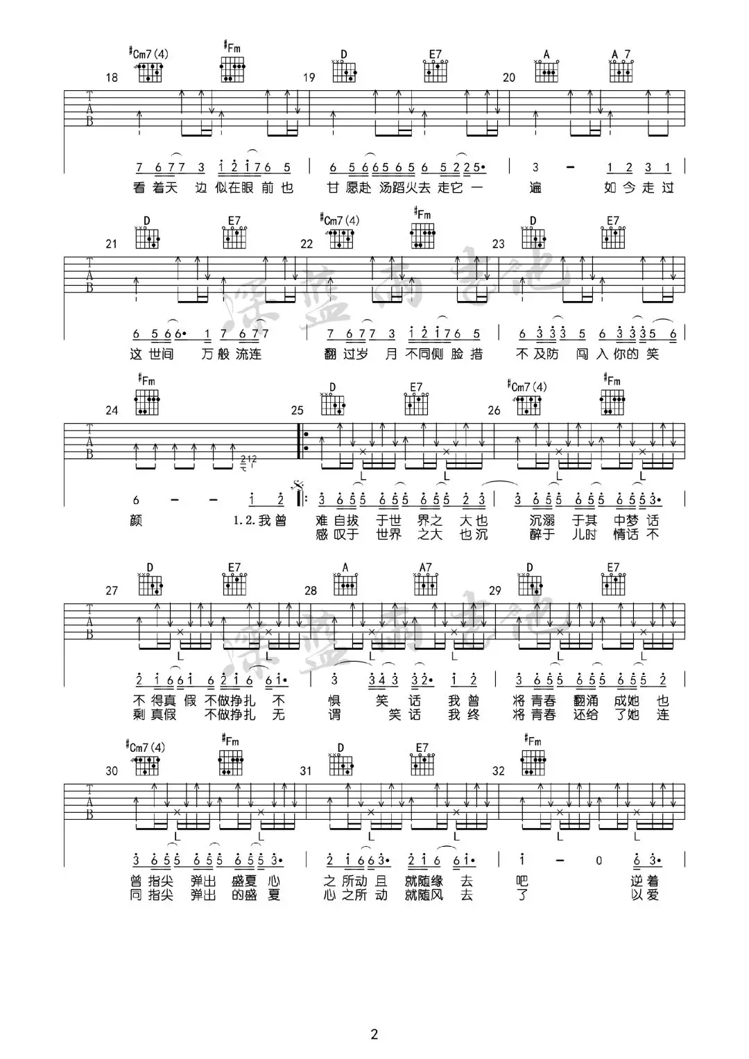 吉他弹唱A调来源:深蓝雨吉他297 浏览2024-01-20 12:26发布图谱共3页