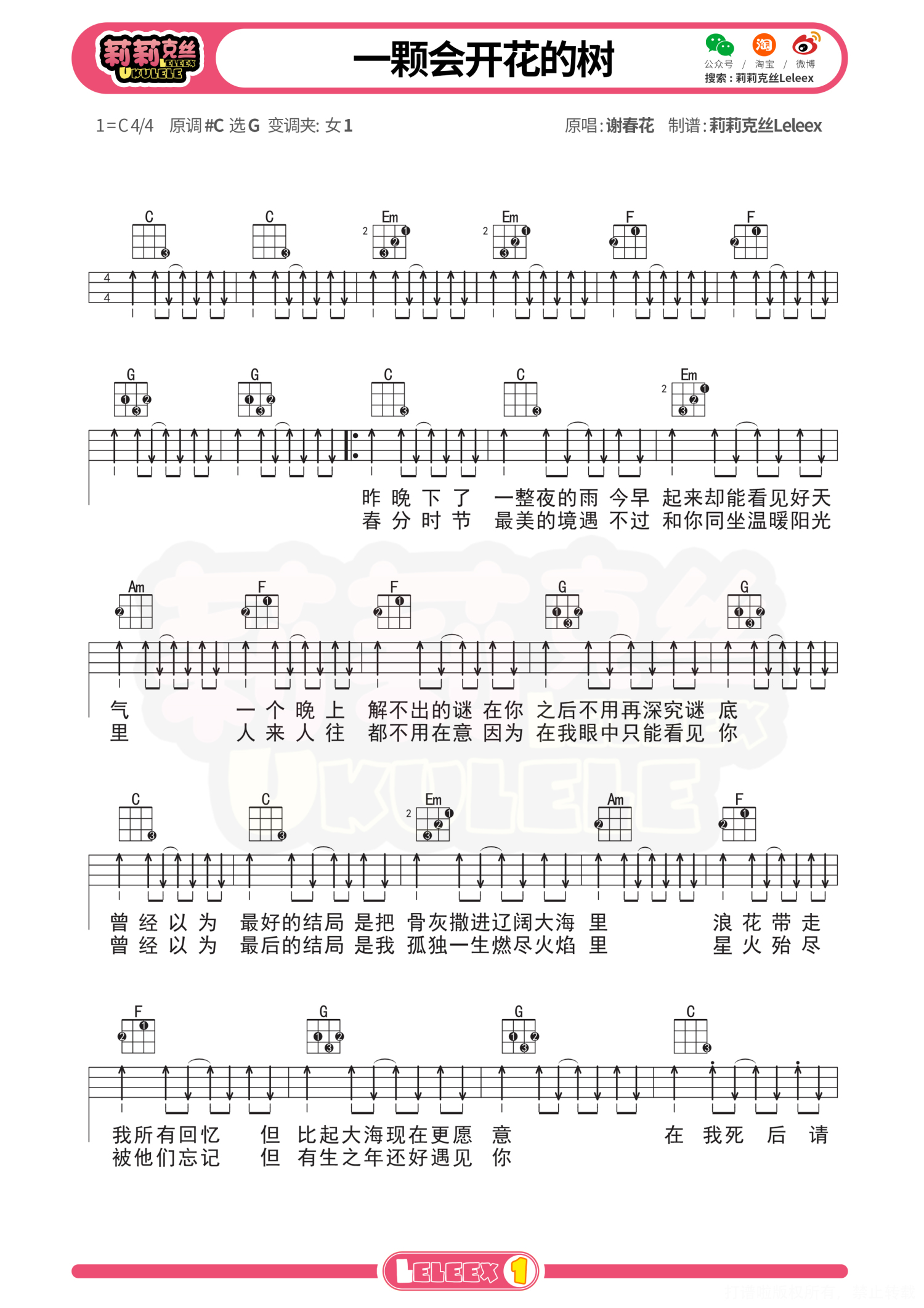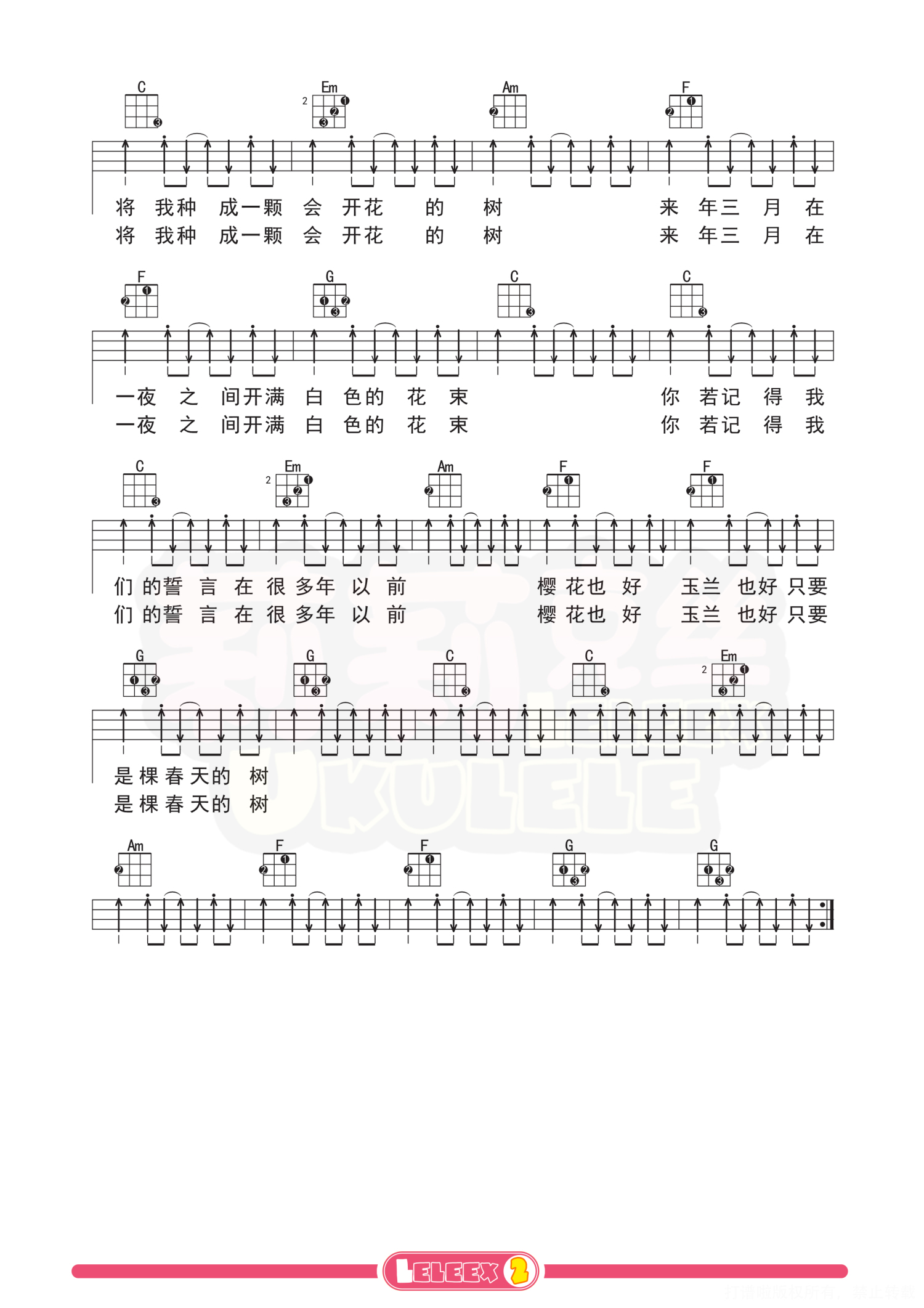 曲谱介绍: 「一颗会开花的树」尤克里里谱 更多尤克里里曲谱/教学  关注@莉莉克丝Leleex