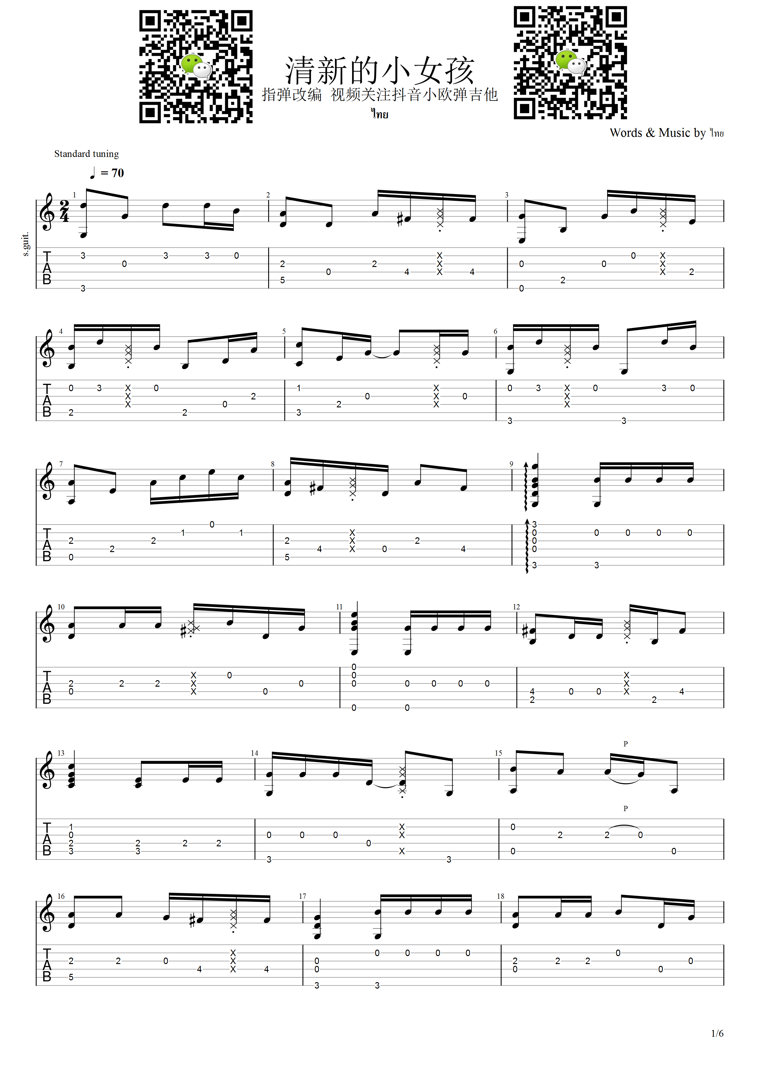 曲谱介绍: 缅甸神曲《清新的小女孩》吉他独奏谱,共有6张高清图谱。