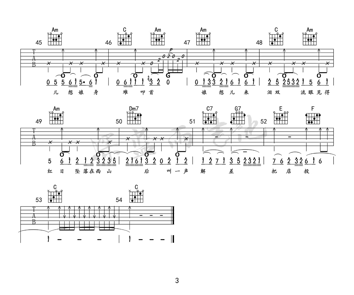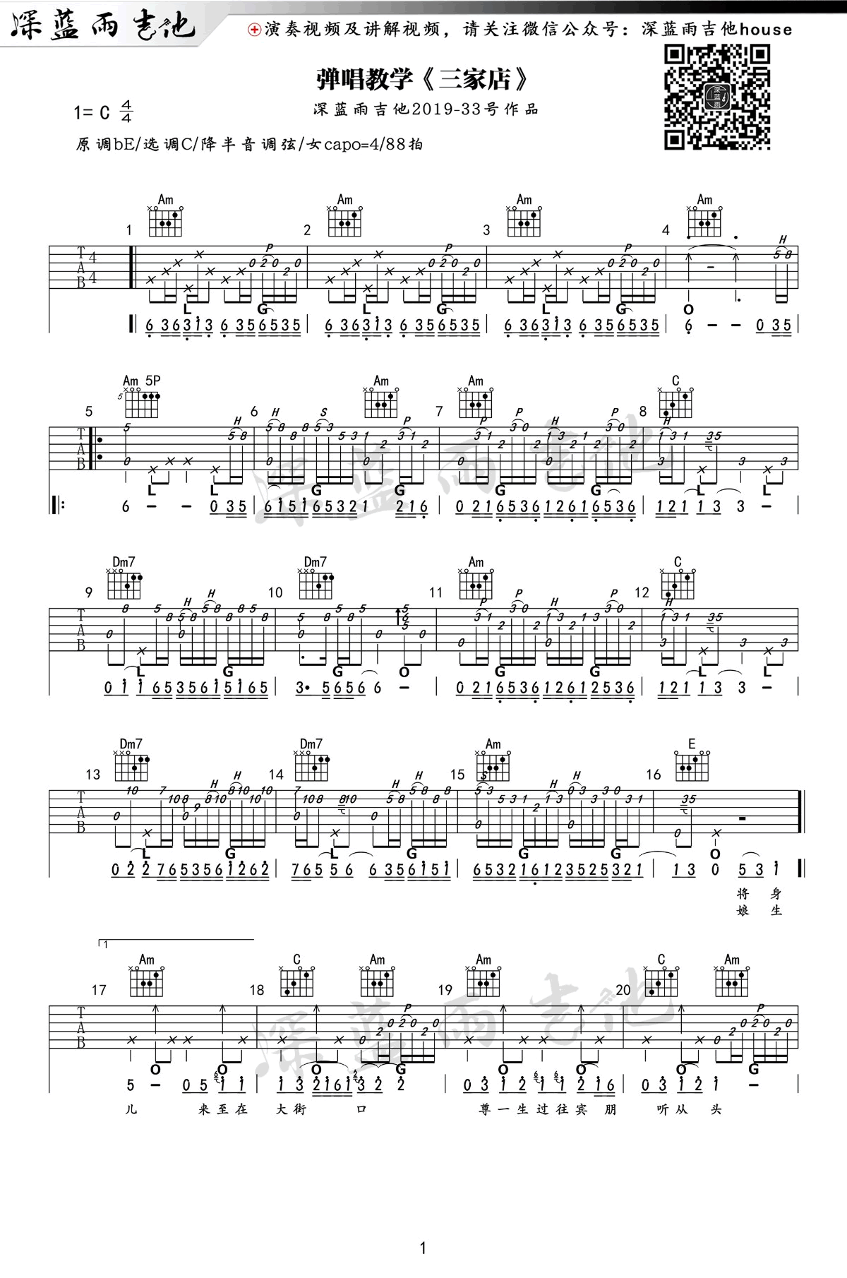 曲谱介绍: 陈粒戏班乐队《三家店》吉他弹唱谱,采用C调指法编配,深蓝雨吉他编配出品,共有3张高清图谱。