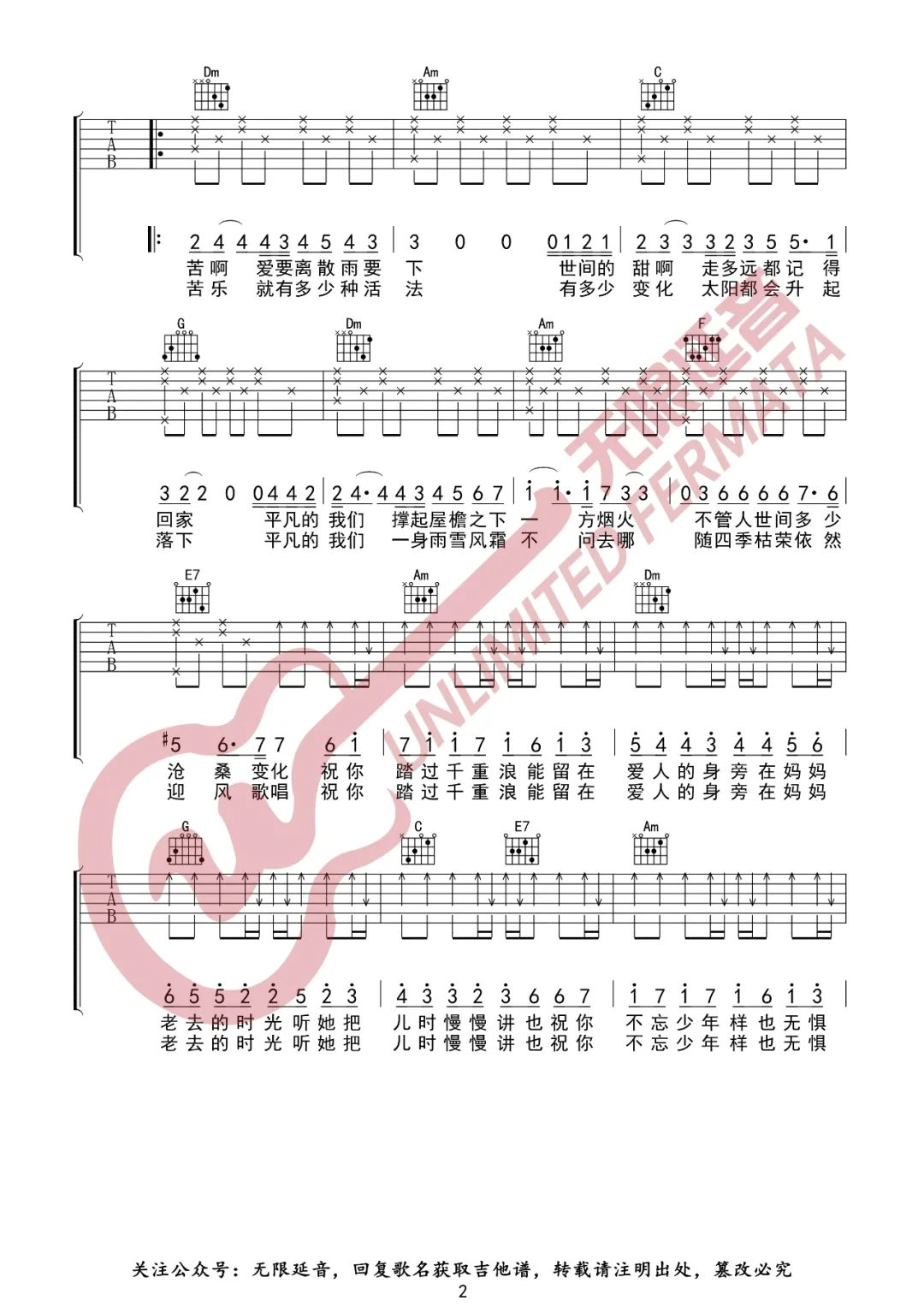 曲谱介绍: 雷佳《人世间》吉他弹唱谱,采用C调指法编配原版,共有3张高清图谱。