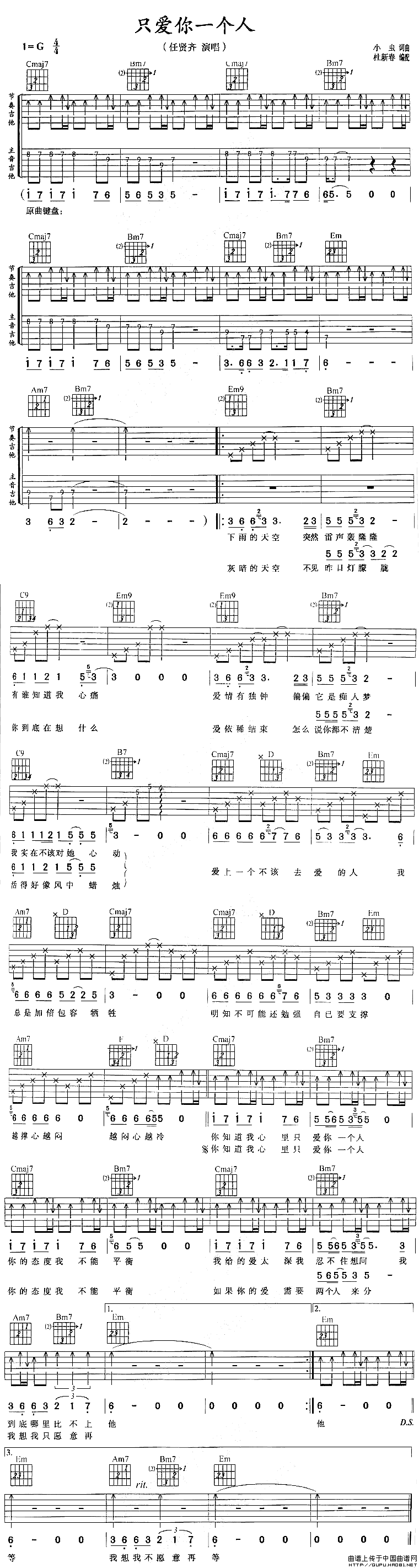 只爱你一个人吉他谱 - 任贤齐 - G调吉他弹唱谱