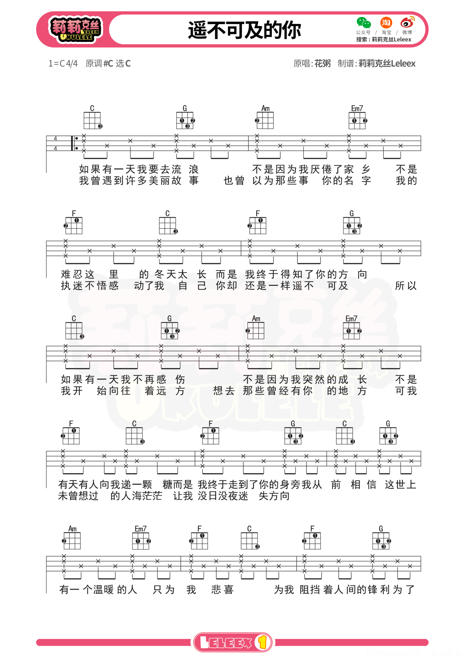 曲谱介绍: 「遥不可及的你」尤克里里谱 更多尤克里里曲谱/教程  关注@莉莉克丝Leleex