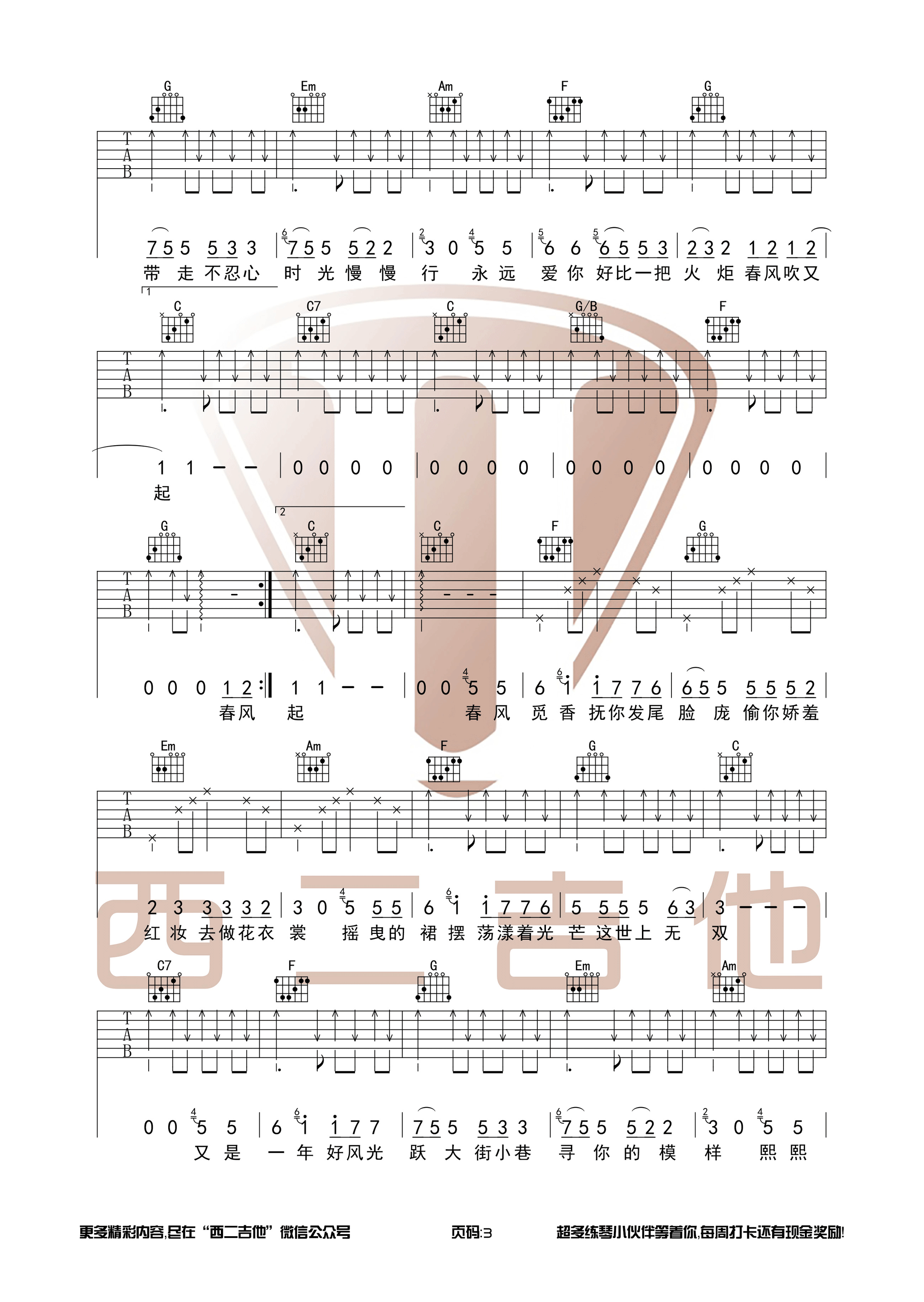 吉他弹唱C调来源:西二吉他112 浏览2024-01-20 12:52发布图谱共4页