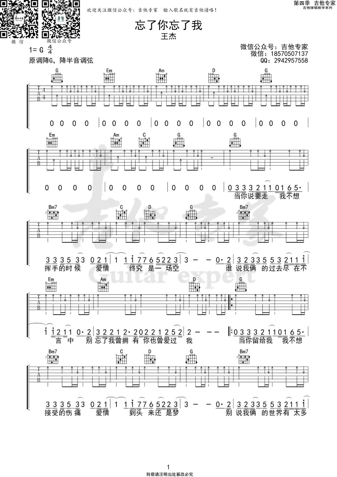 当前位置:琴谱网>吉他弹唱>忘了你忘了我