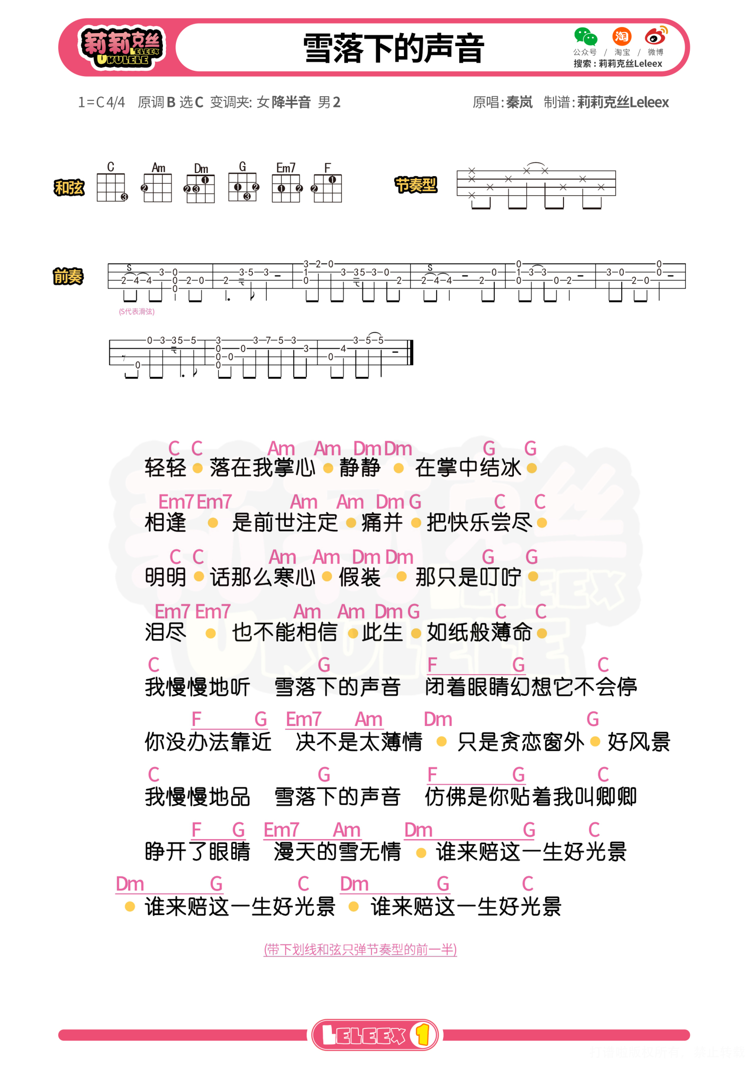 曲谱介绍: 「雪落下的声音」尤克里里谱 更多尤克里里曲谱/教学  关注@莉莉克丝Leleex