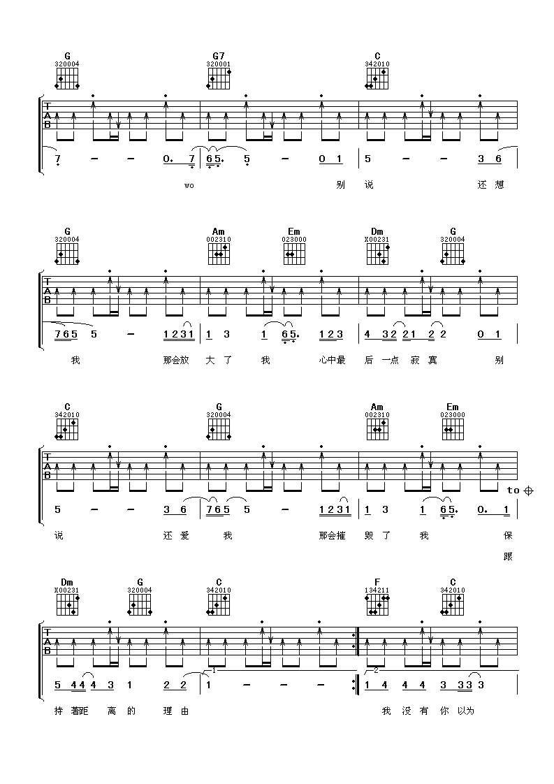 当前位置:琴谱网>吉他弹唱>别说