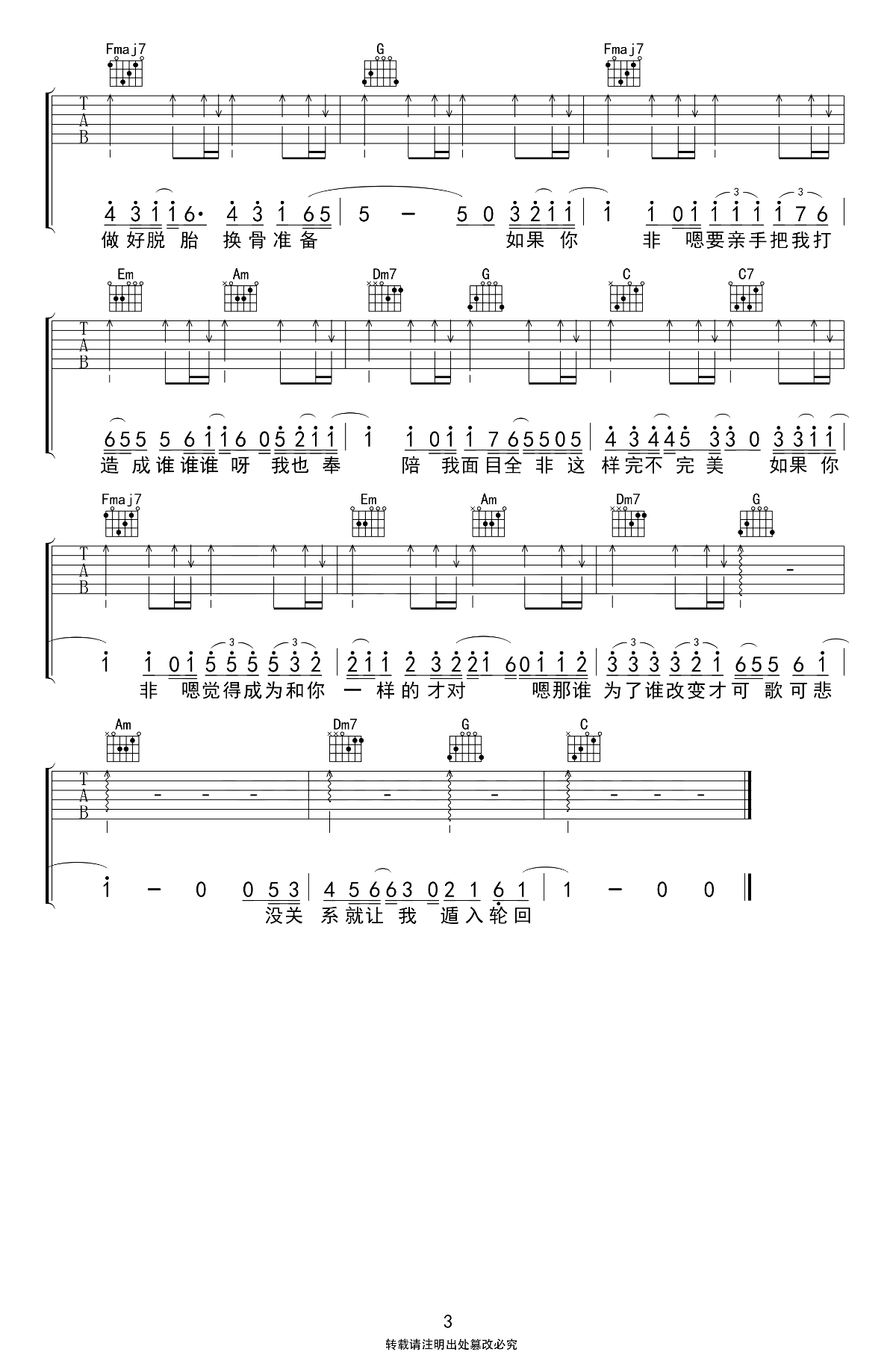 当前位置:琴谱网>吉他弹唱>脱胎换骨