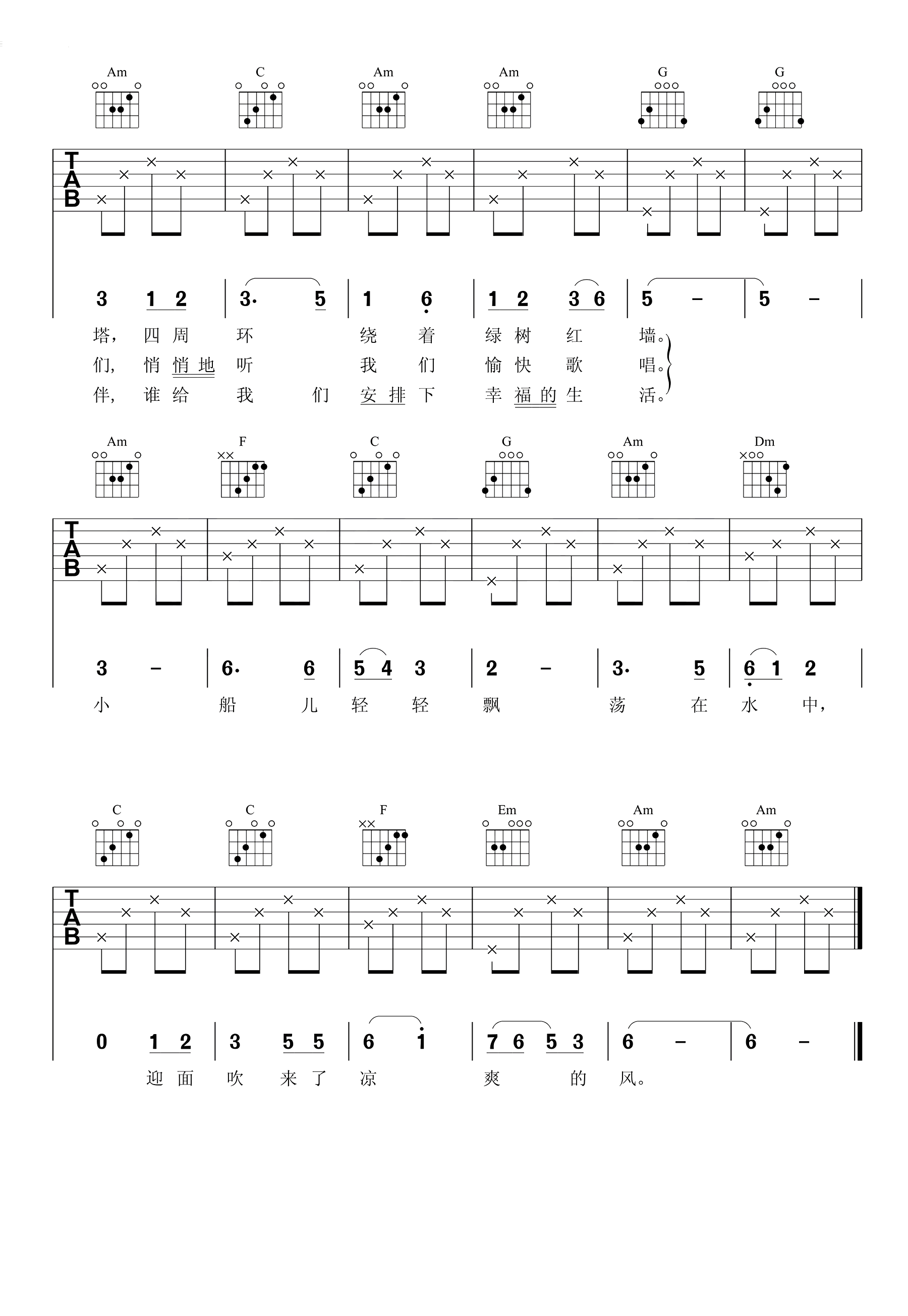 让我们荡起双桨吉他谱 - 儿歌 - C调吉他弹唱谱