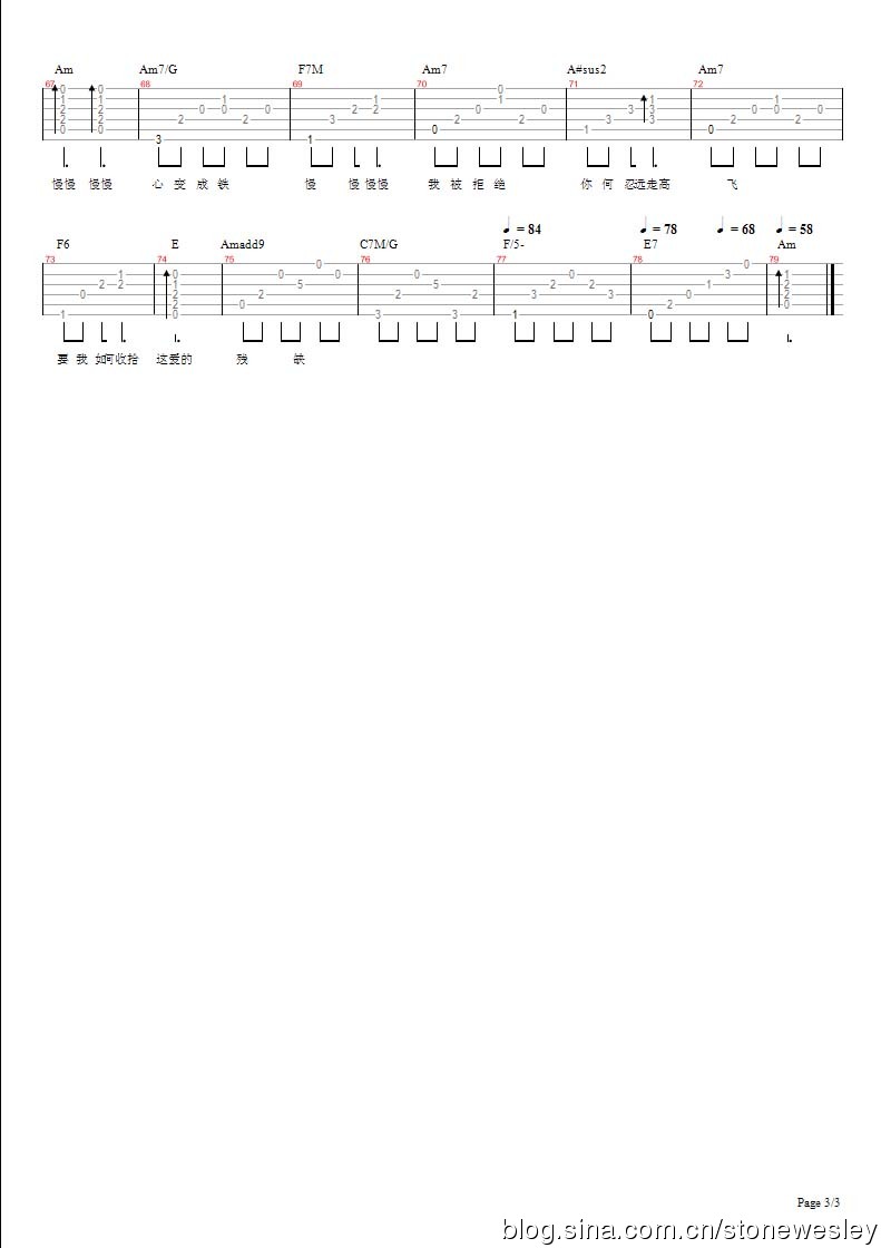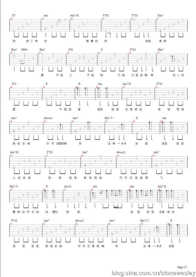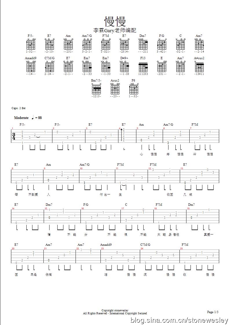 曲谱介绍: 张学友《慢慢》吉他弹唱谱,采用F调指法编配,共有3张高清图谱。