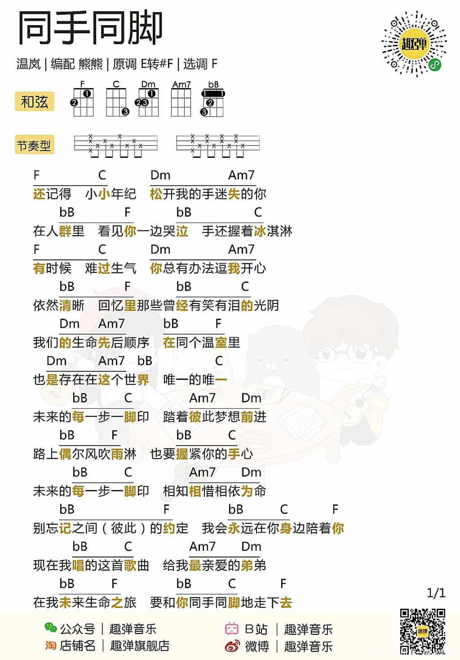 曲谱介绍: Aloha~今天跟大家分享的歌曲是 温岚的「同手同脚」 这里并不是“顺拐”的意思啊喂各位 它讲的是“手足之情”~   《同手同脚》尤克里里谱: