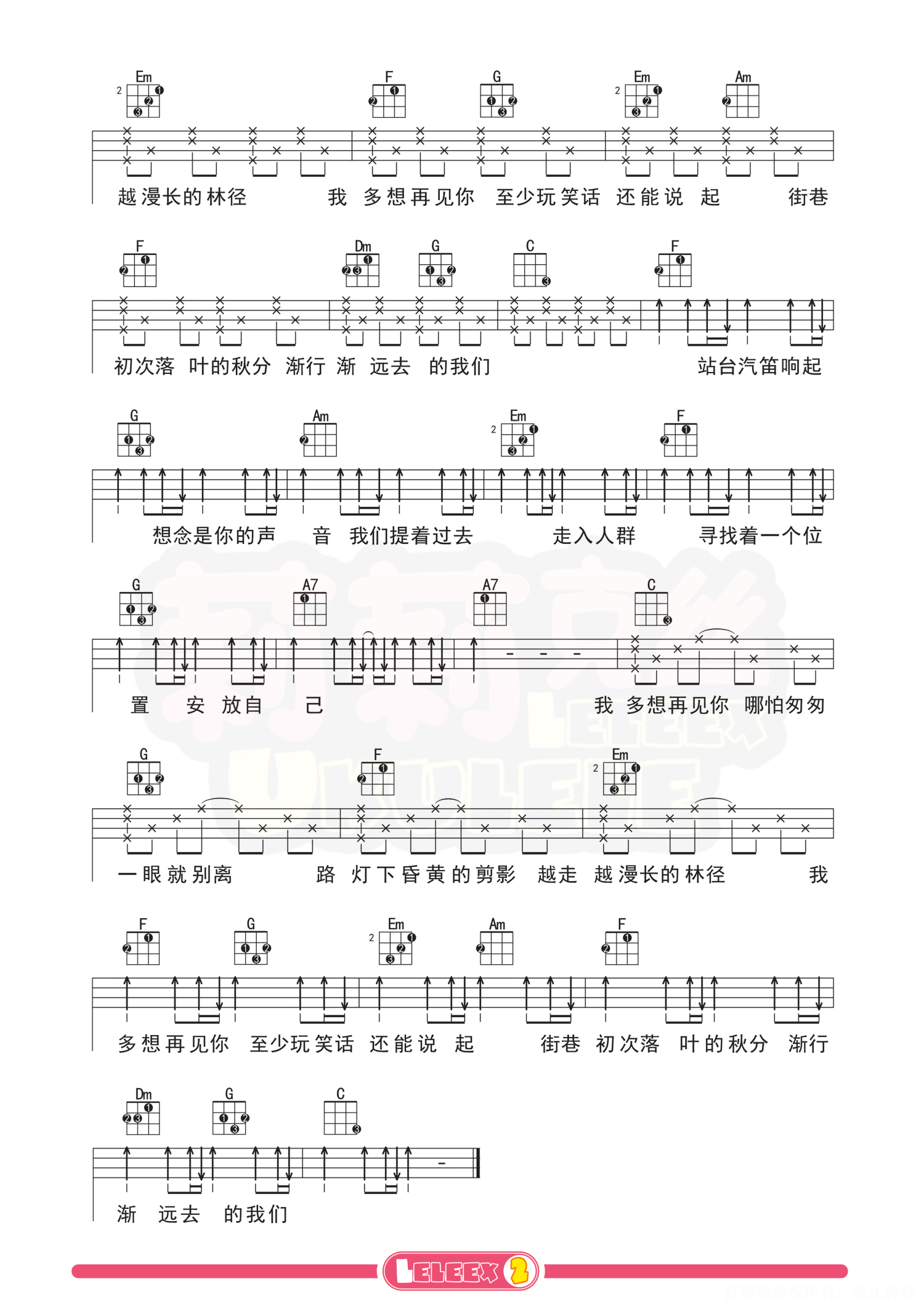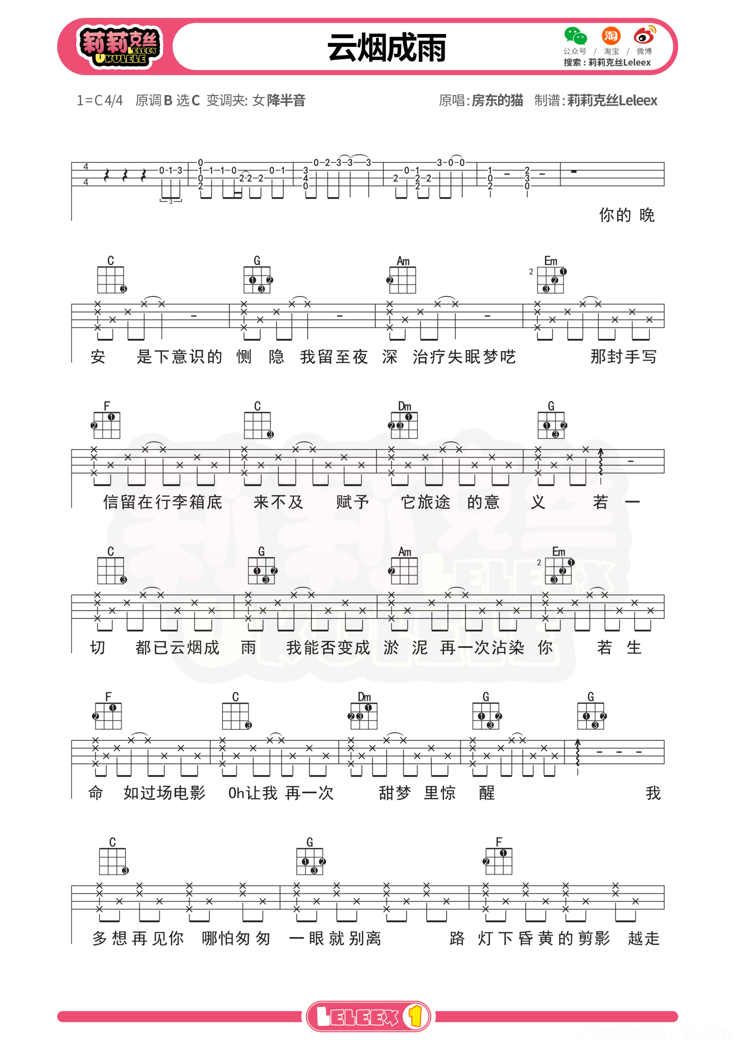 曲谱介绍: 「云烟成雨」尤克里里教学 曲谱 更多尤克里里曲谱/教学  关注@莉莉克丝Leleex