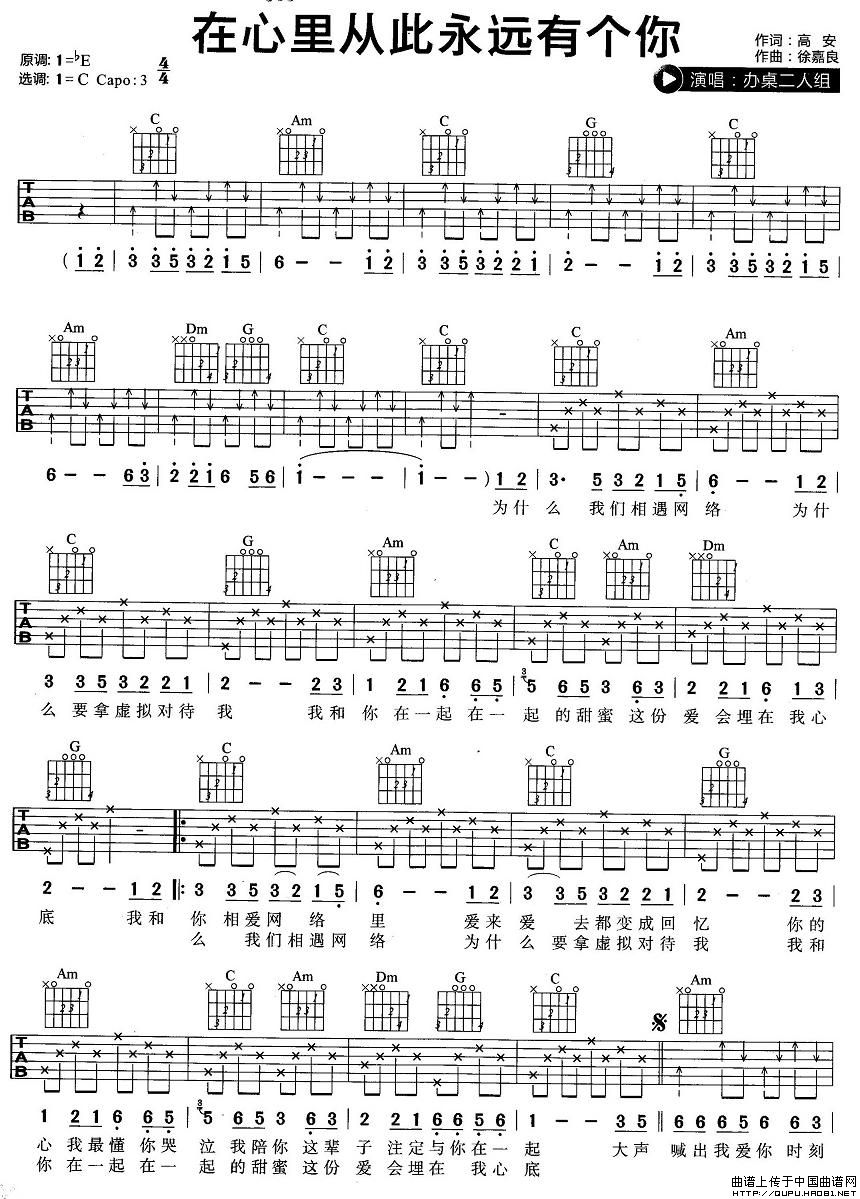 当前位置:琴谱网>吉他弹唱>在心里从此永远有个你