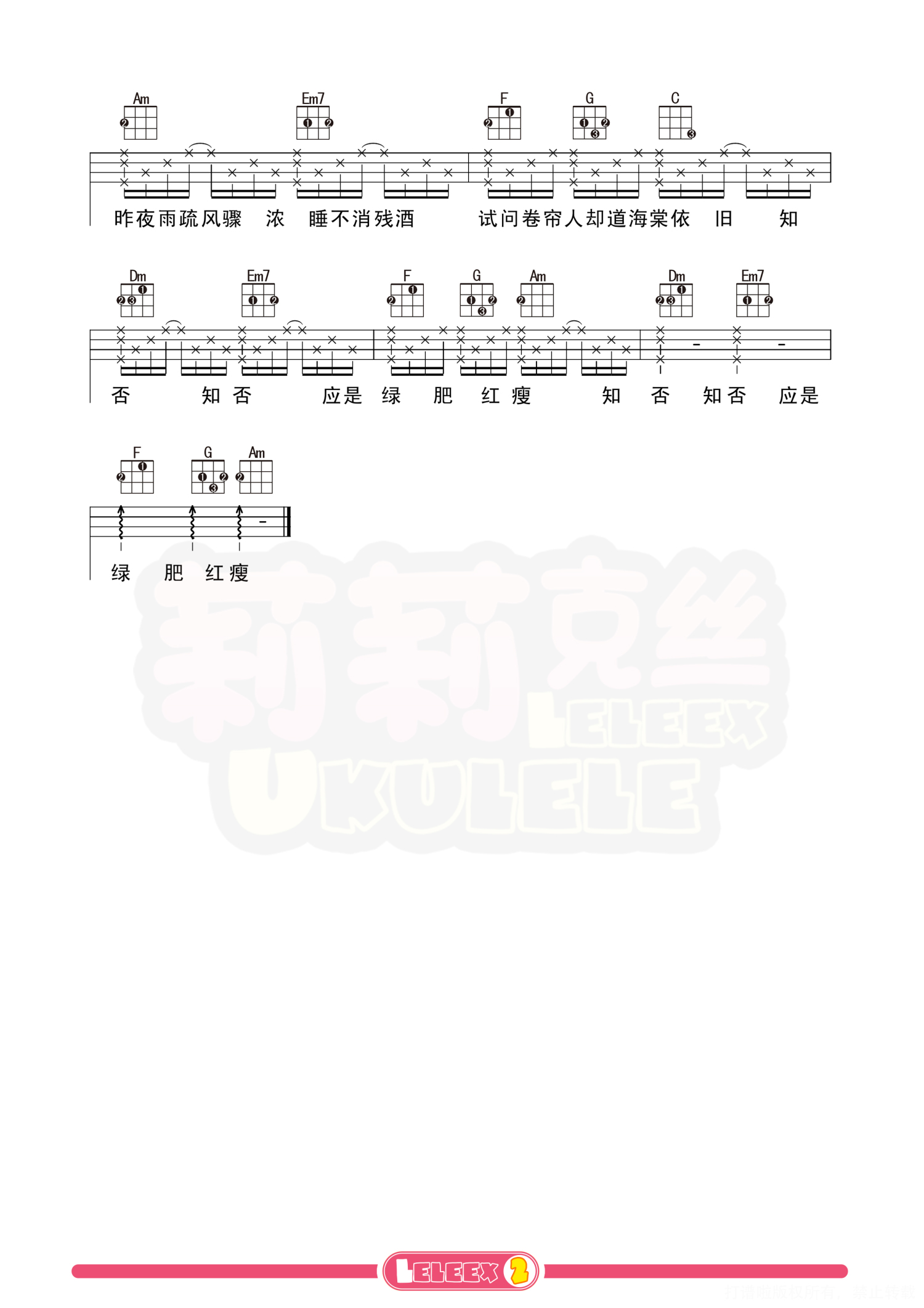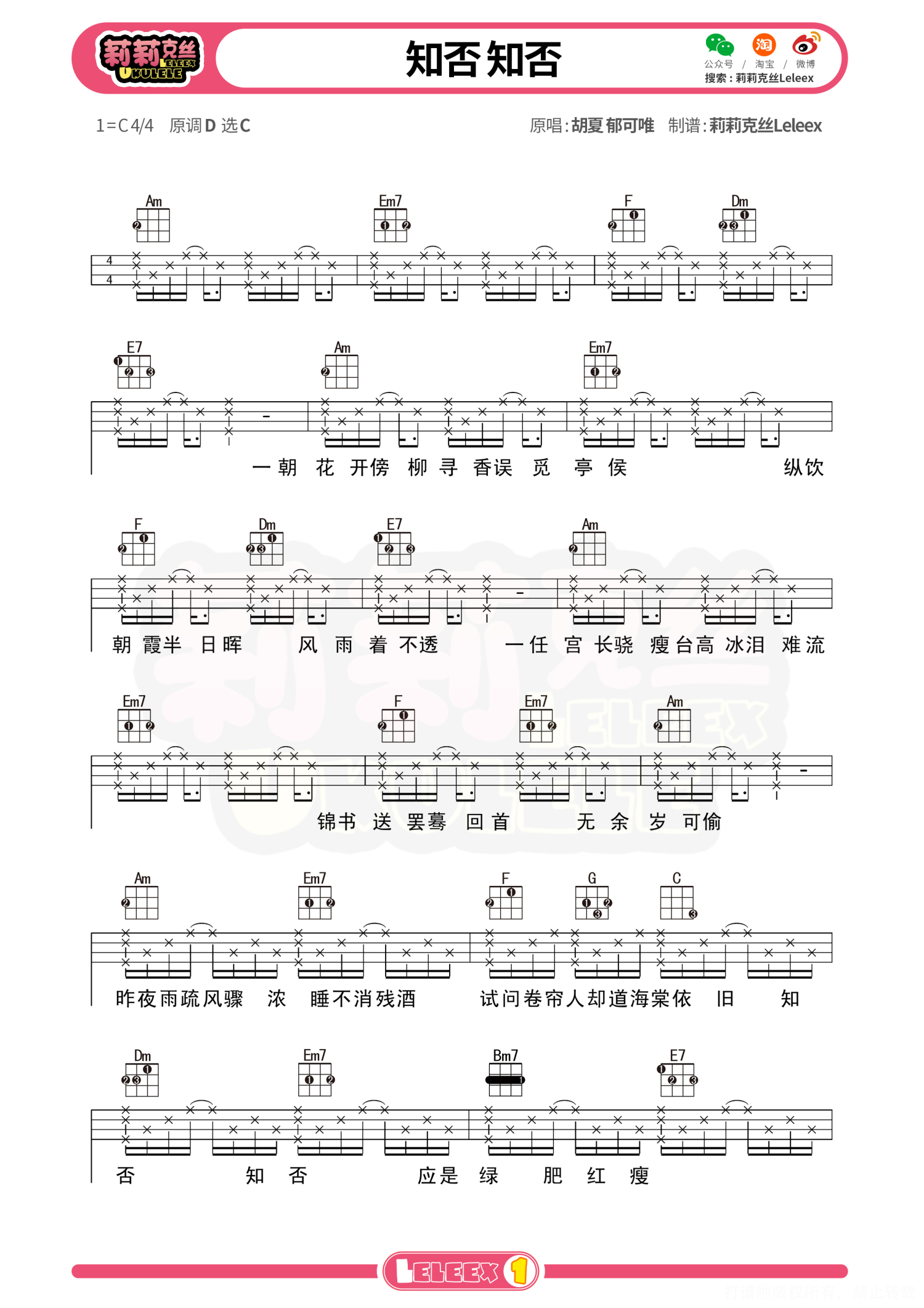 曲谱介绍: 「知否知否」尤克里里曲谱(胡夏 郁可唯)莉莉克丝Leleex 更多尤克里里曲谱/教学  关注@莉莉克丝Leleex