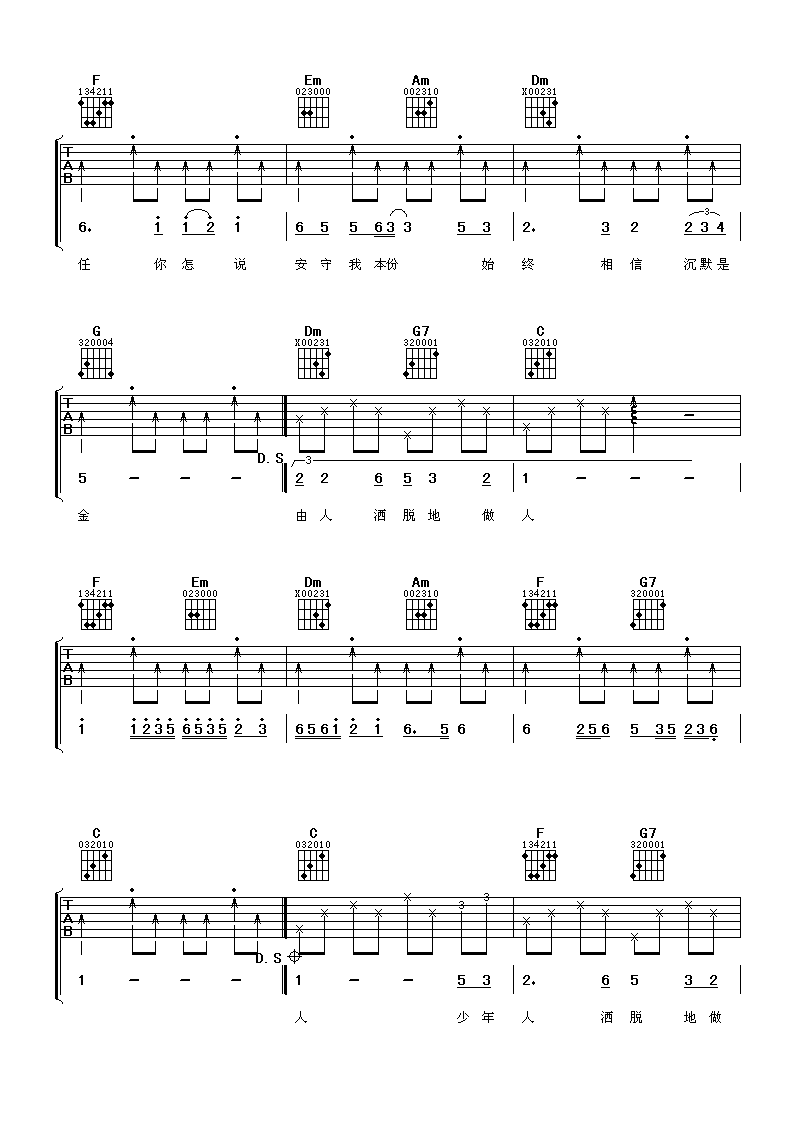 当前位置:琴谱网>吉他弹唱>沉默是金