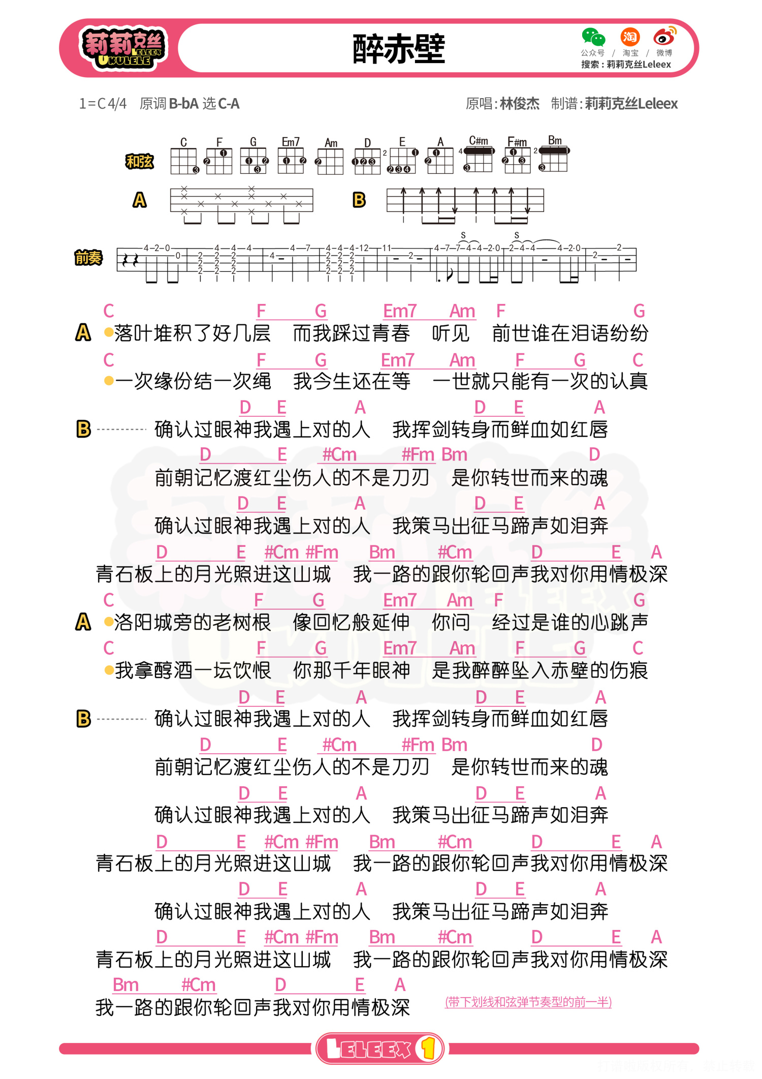 曲谱介绍: 「醉赤壁」尤克里里曲谱(林俊杰) 更多尤克里里曲谱/教学  关注@莉莉克丝Leleex