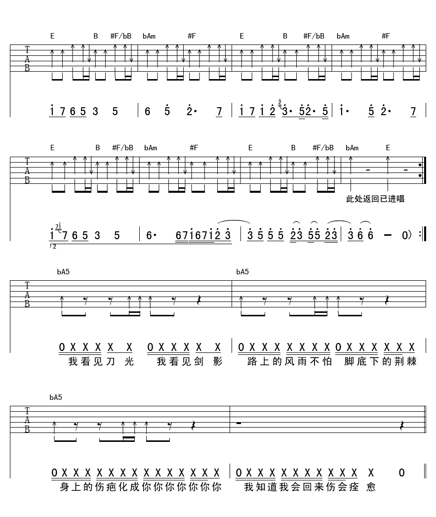 曲谱介绍: 任贤齐《诛仙我回来》吉他弹唱谱,采用B调指法编配,延麟编配出品,共有3张高清图谱。