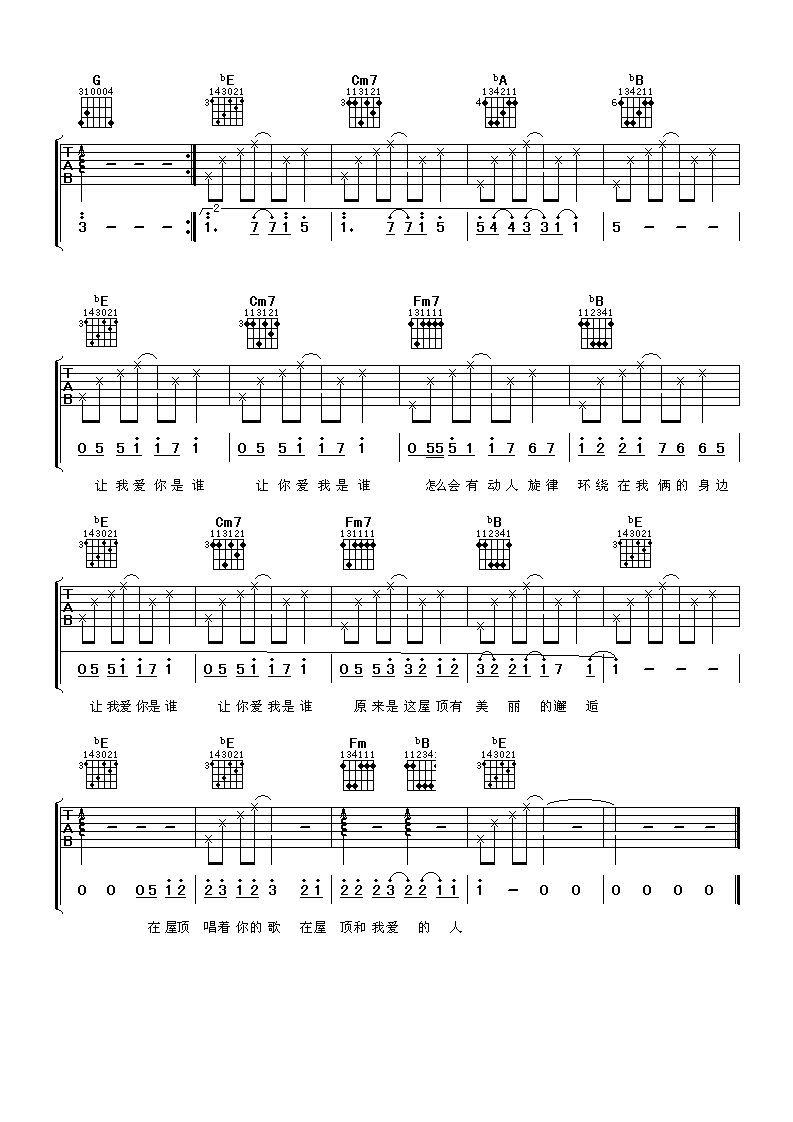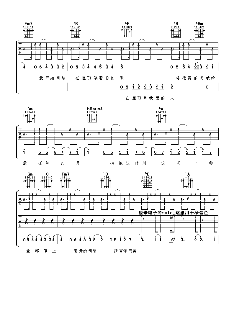 当前位置:琴谱网>吉他弹唱>屋顶