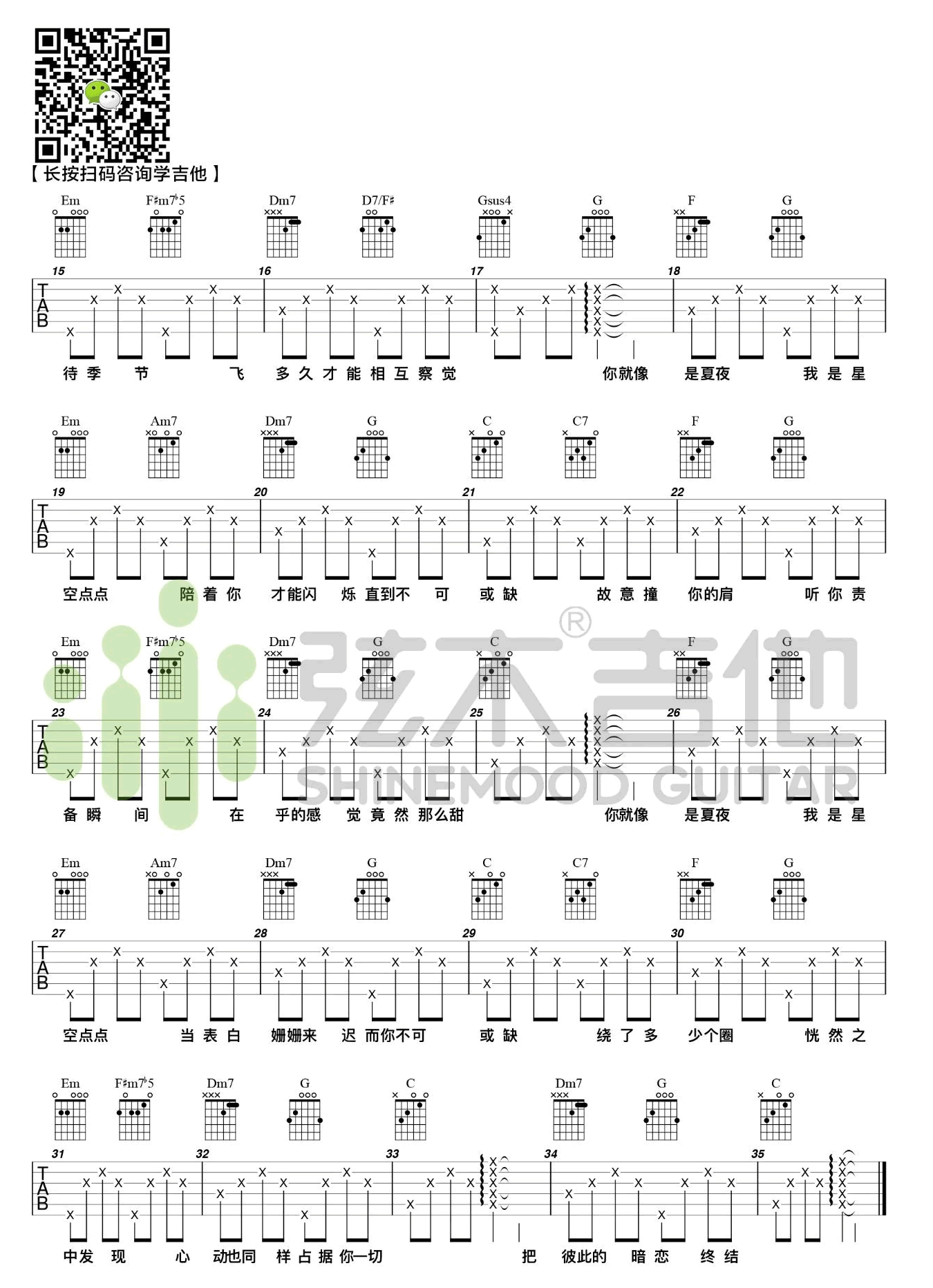吉他弹唱C调来源:弦木吉他188 浏览2024-01-20 15:34发布图谱共2页