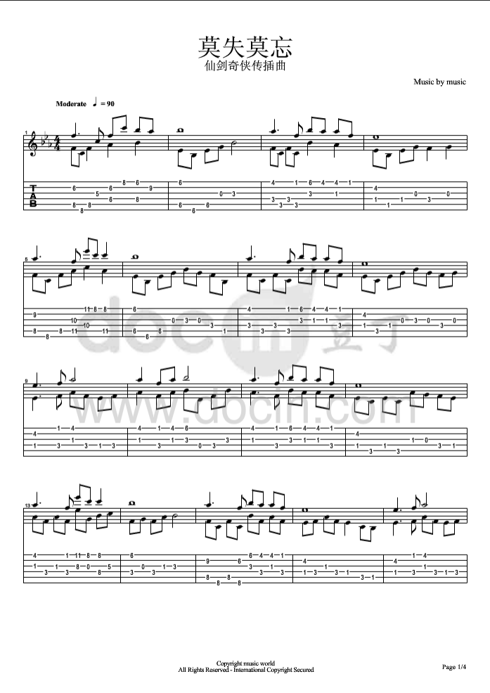 琴谱网为您精心推荐 莫失莫忘 高清图谱